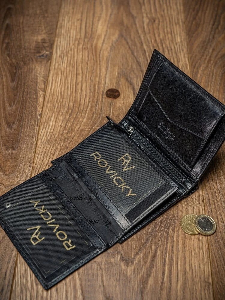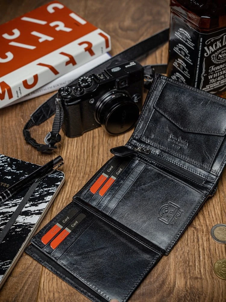 - portfel wyposażony w system RFID STOP - w czasach, kiedy złodzieje zdobywają się na coraz to nowsze i innowacyjne sposoby na kradzież naszych środków, system RFID jest niezwykle istotny, bowiem rabuś nie zeskanuje danych z Twojej karty płatniczej - portfel jest bardzo bezpieczny!