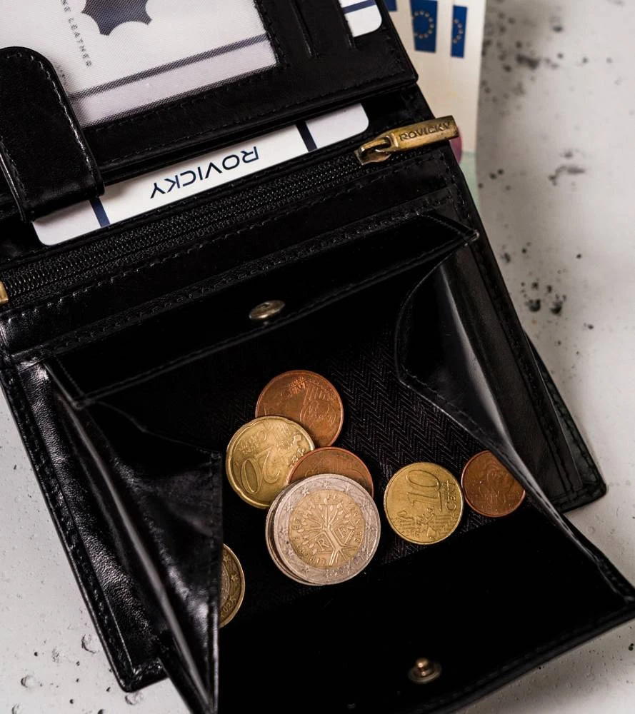 W portfelu jest 1 kieszeń, w której schowasz bilon. Kieszeń jest dosyć pojemna i zapinana na solidny zatrzask.