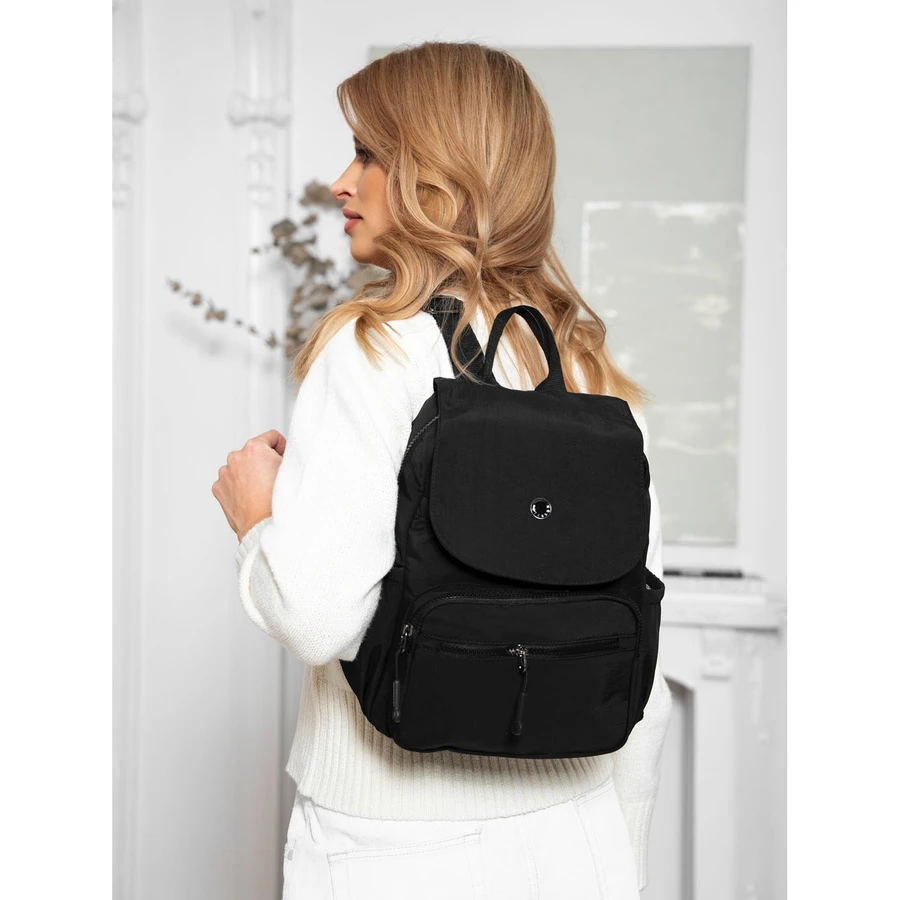Plecak damski Peterson czarny – lekki plecak miejski z kieszeniami i klapką
