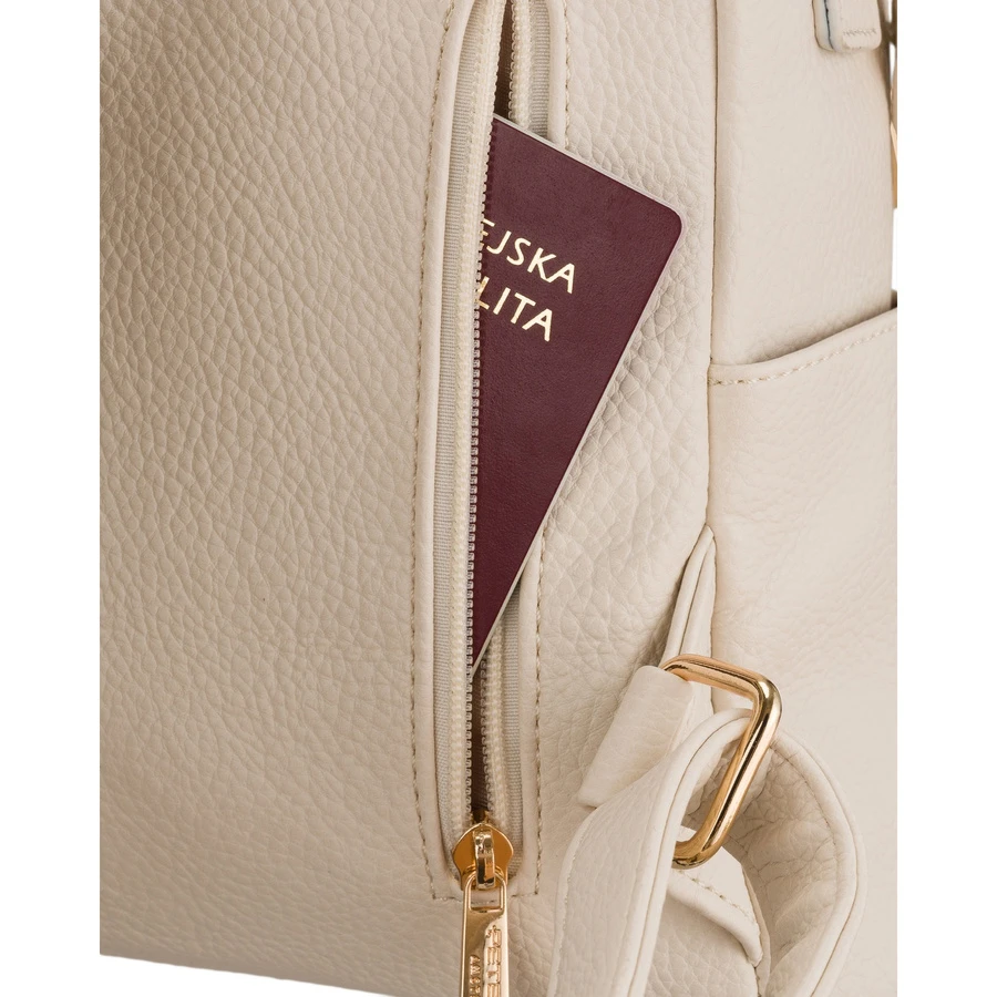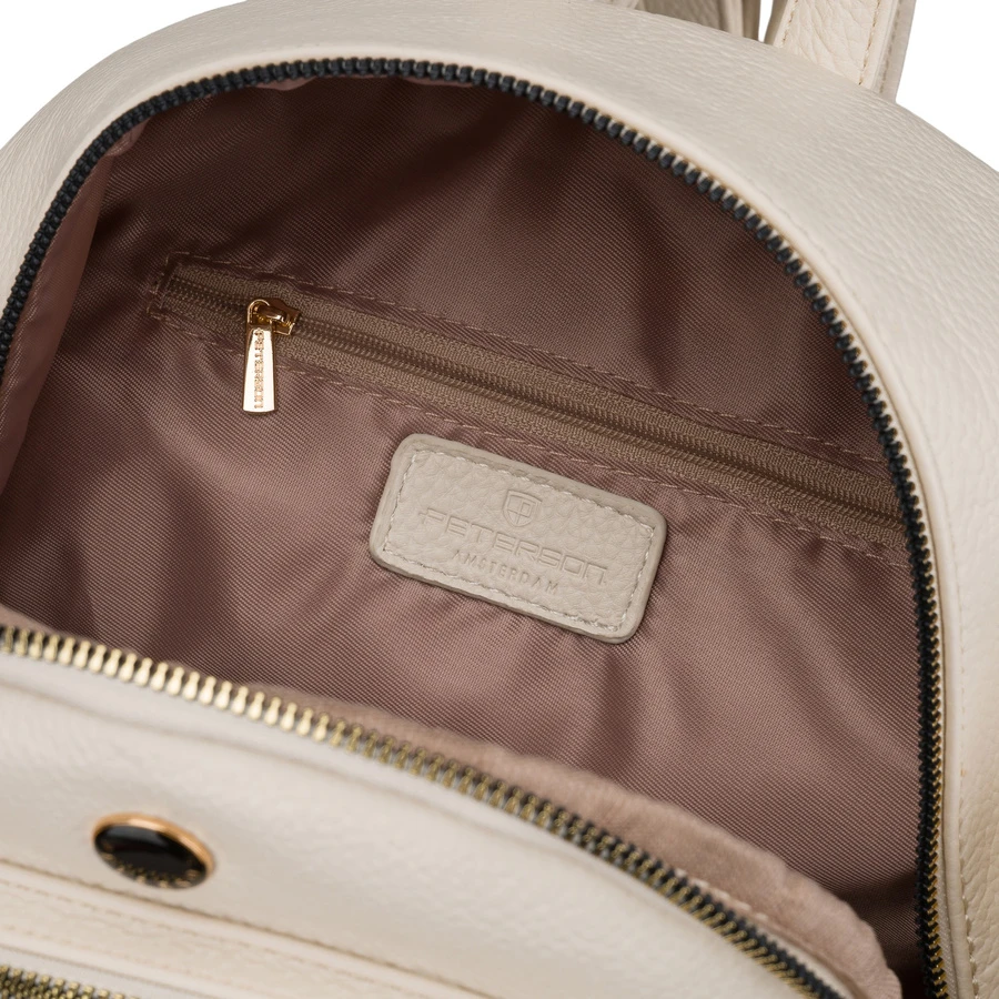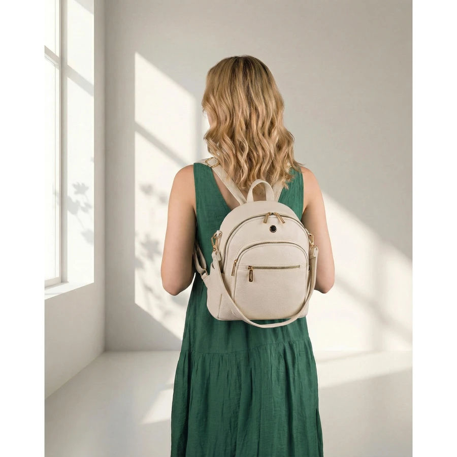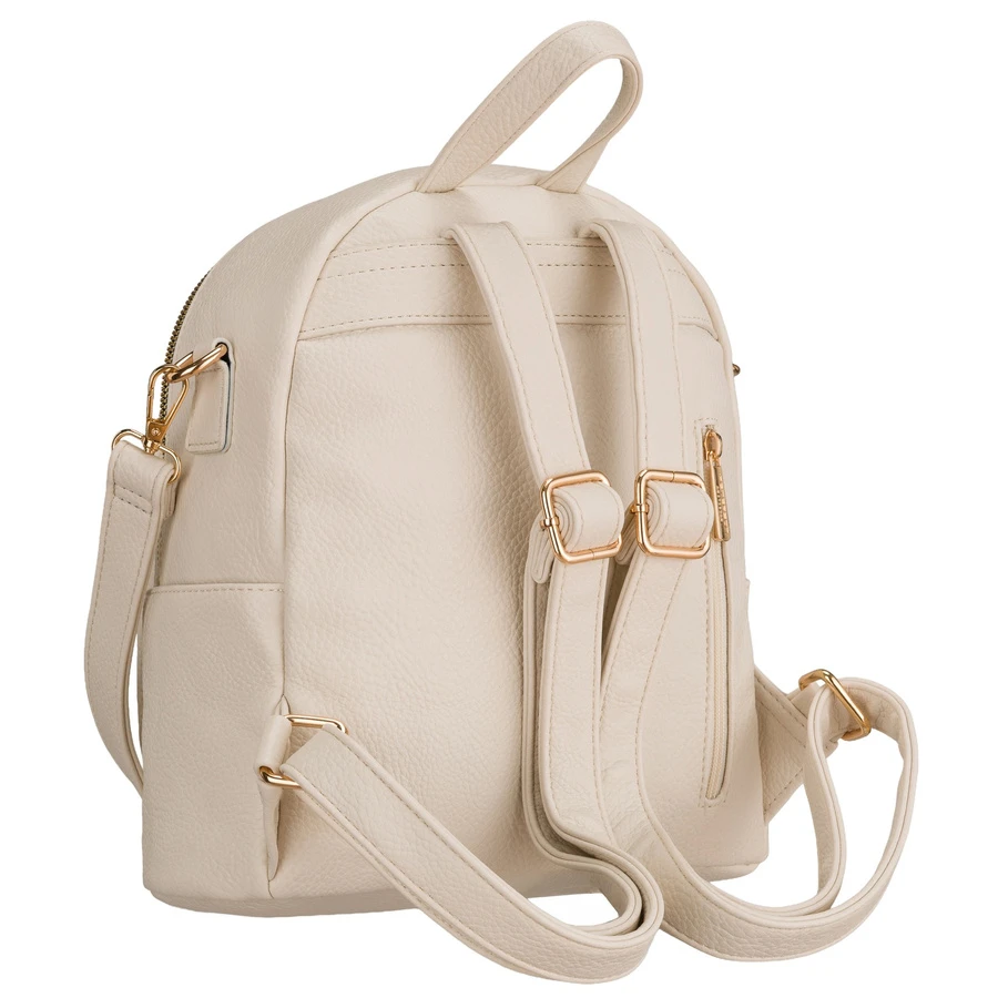 Plecak damski mały ze skóry ekologicznej modny miejski beżowy na suwak listonoszka na ramie torebka 2w1 - Peterson