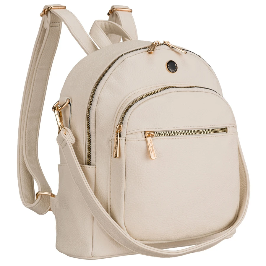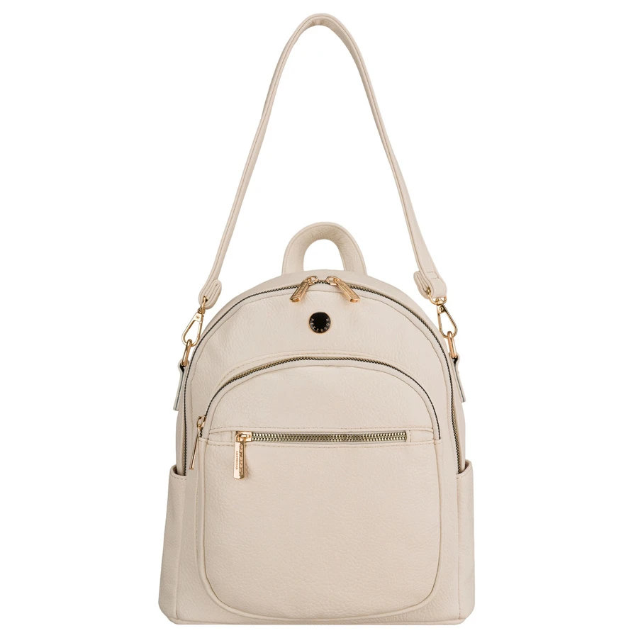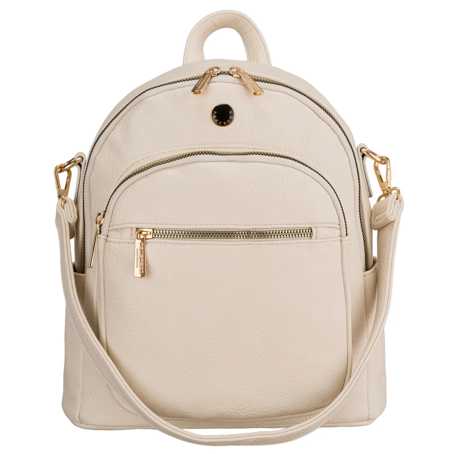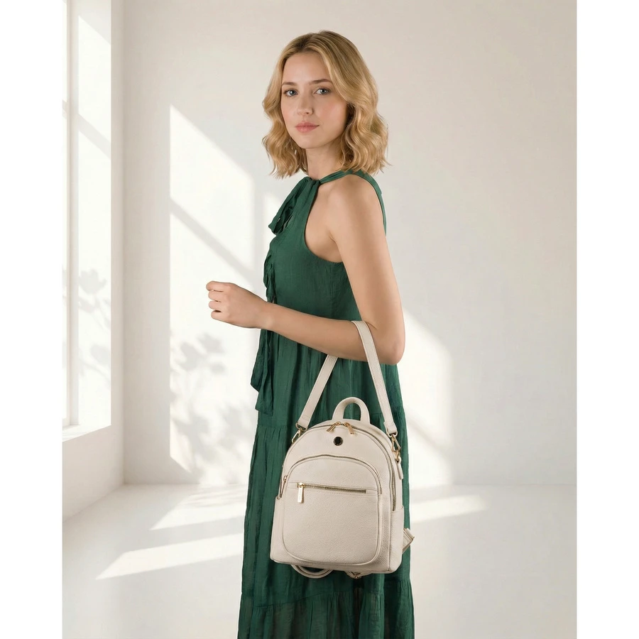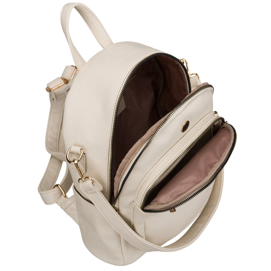 Plecak damski mały ze skóry ekologicznej modny miejski beżowy na suwak listonoszka na ramie torebka 2w1 - Peterson
