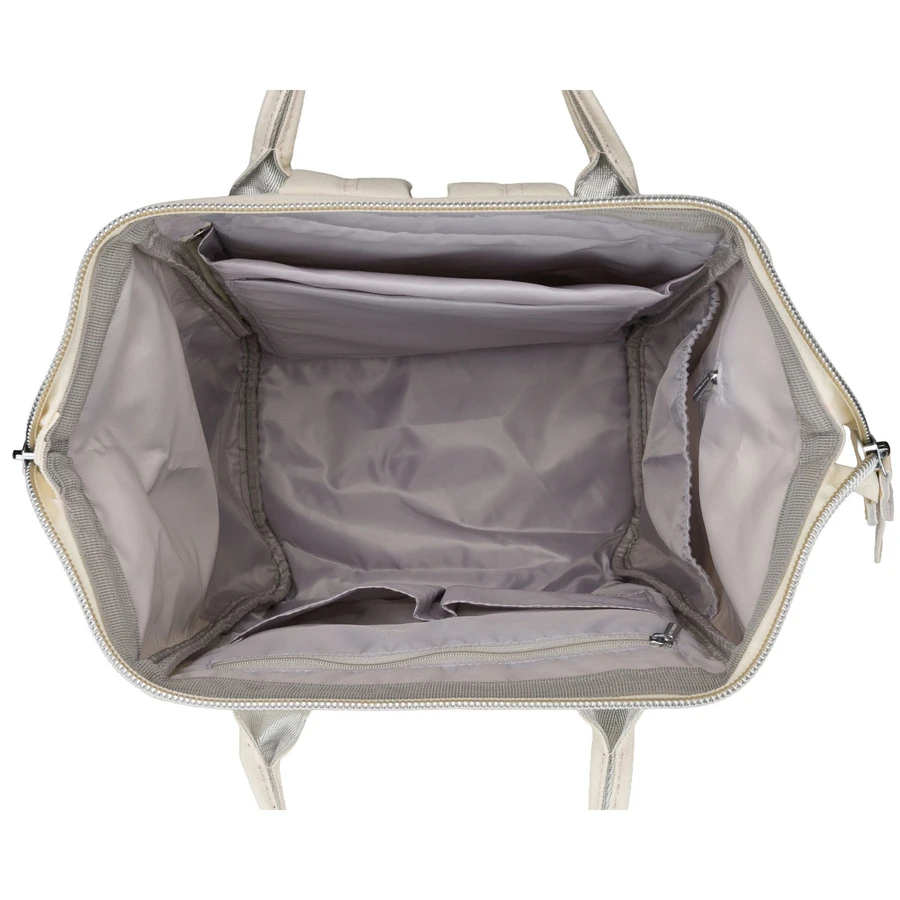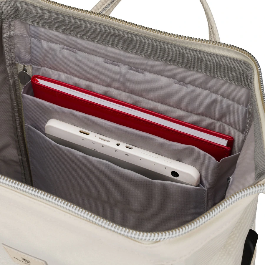 Plecak damski z poliestru w kolorze ecru z miejscem na laptopa i portem USB - Peterson