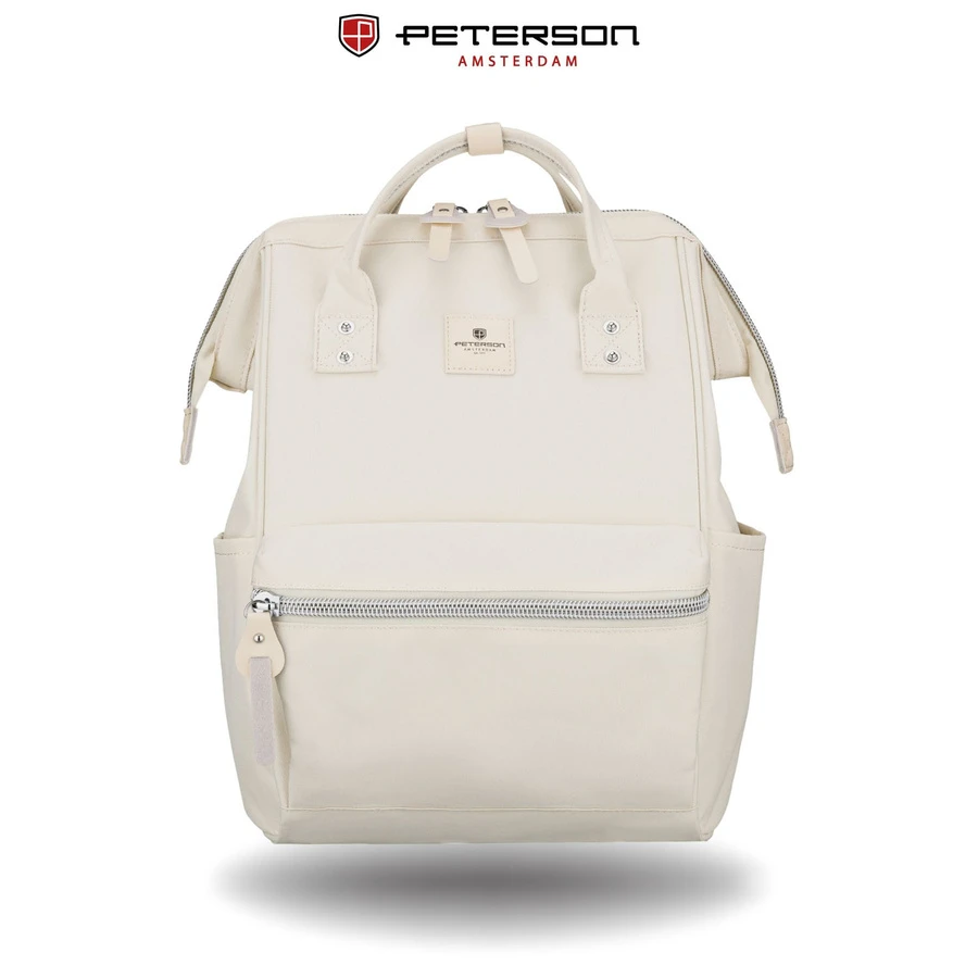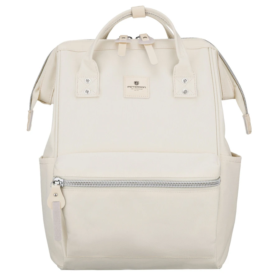 Plecak damski z poliestru w kolorze ecru z miejscem na laptopa i portem USB - Peterson | Niua.pl