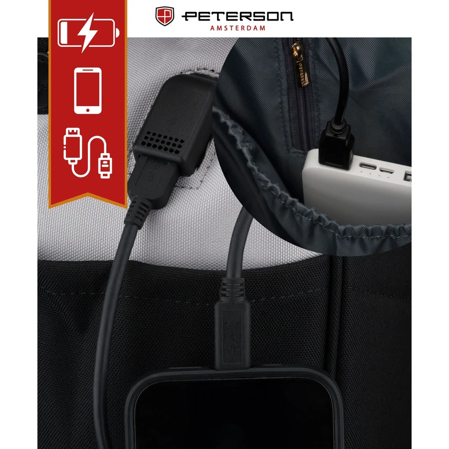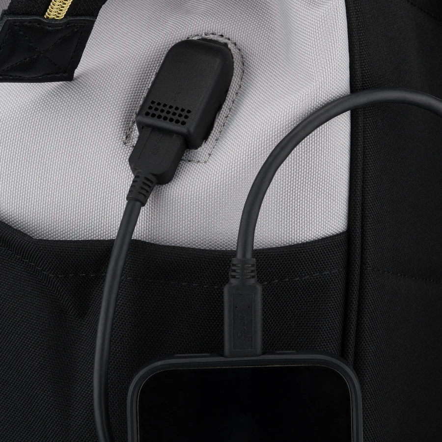Nie musisz już martwić się o rozładowaną baterię w telefonie! Ten plecak został wyposażony w praktyczny port USB, który umożliwia wygodne podłączenie powerbanka i ładowanie urządzeń mobilnych w dowolnym miejscu. Port jest umieszczony z boku plecaka, dzięki czemu możesz ładować telefon bez konieczności otwierania plecaka – idealne rozwiązanie dla osób aktywnych, które zawsze chcą być w kontakcie.