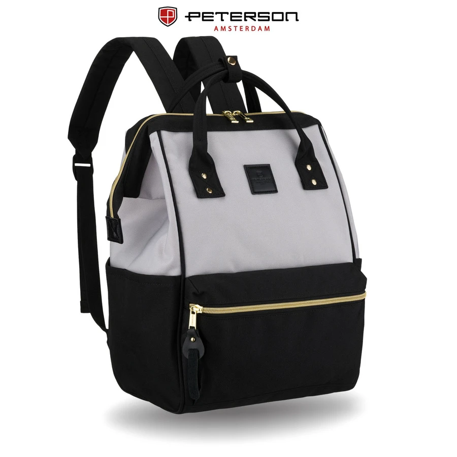 Plecak damski z poliestru w szaro-czarnym kolorze, idealny na bagaż podręczny - Peterson | Niua.pl