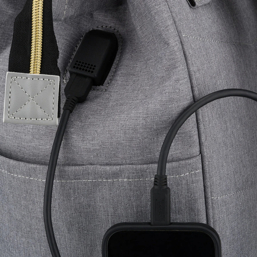 Nie musisz już martwić się o rozładowaną baterię w telefonie! Ten plecak został wyposażony w praktyczny port USB, który umożliwia wygodne podłączenie powerbanka i ładowanie urządzeń mobilnych w dowolnym miejscu. Port jest umieszczony z boku plecaka, dzięki czemu możesz ładować telefon bez konieczności otwierania plecaka – idealne rozwiązanie dla osób aktywnych, które zawsze chcą być w kontakcie.