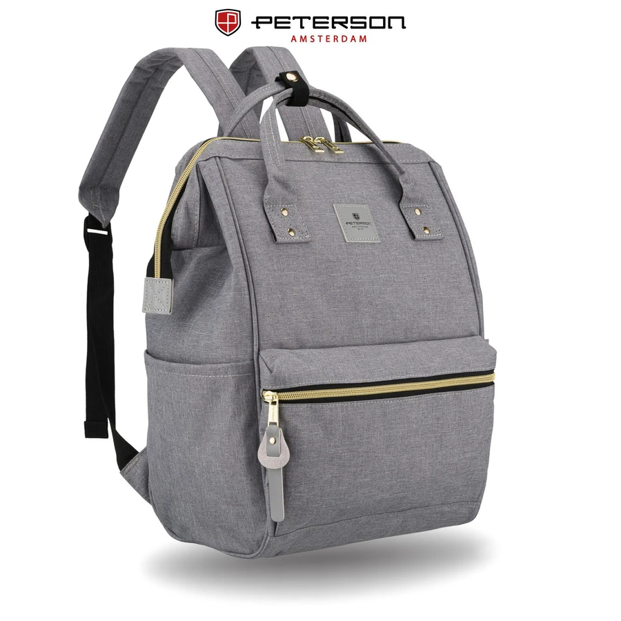 Plecak damski z poliestru w szarym kolorze zamykany bezpiecznym suwakiem - Peterson | Niua.pl