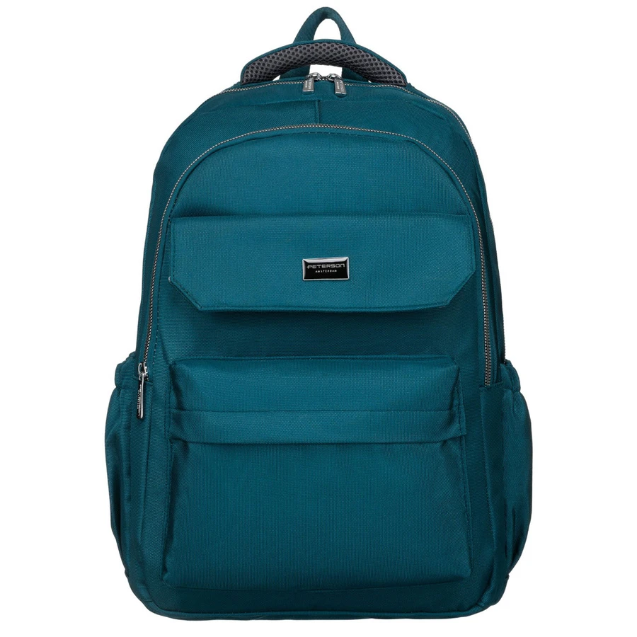 Na przodzie znajduje się eleganckie, metalowe logo Peterson w czarnym kolorze, które podkreśla nowoczesny charakter plecaka. Wysokiej jakości metalowe zamki i precyzyjne szycie to znak rozpoznawczy polskiej marki.