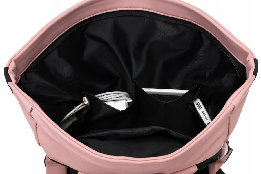 Plecak sportowy roll-top w różowym kolorze zamykany klamrą i suwakiem - Peterson