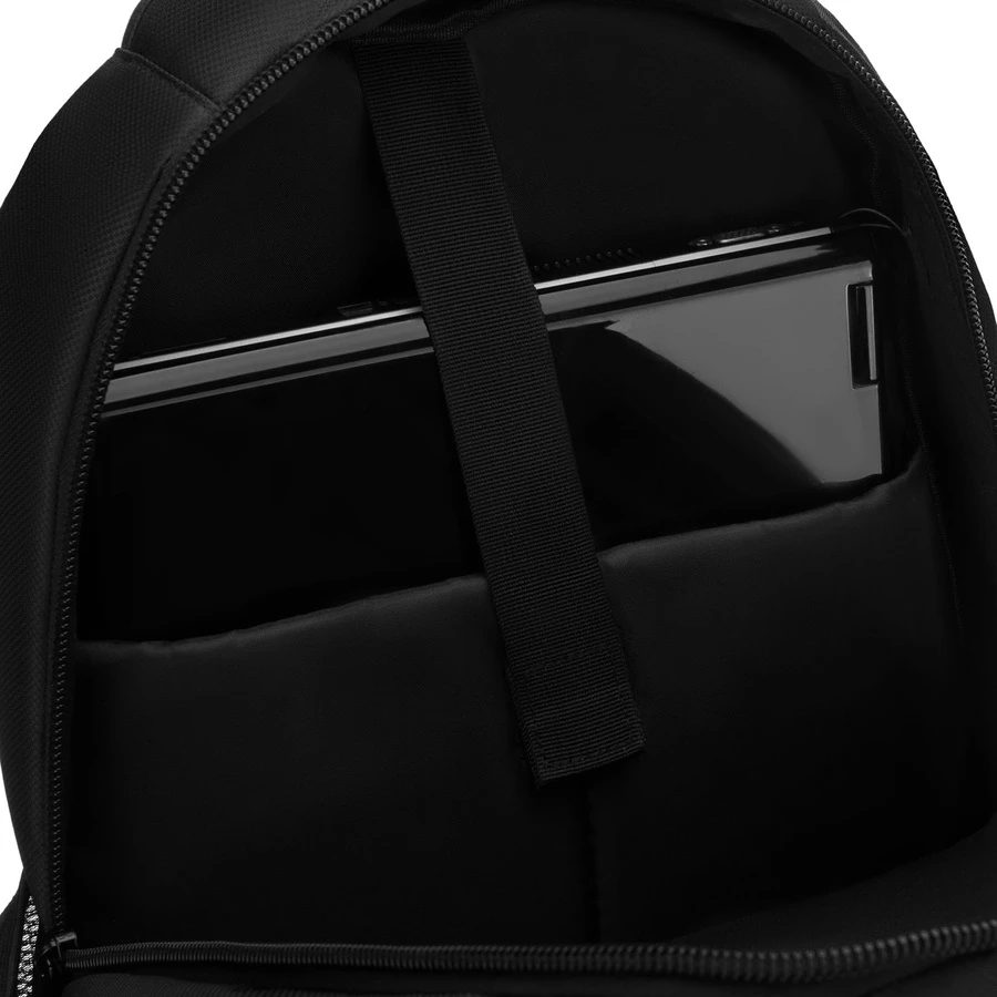 W tylnej komorze znajduje się wyściełana przegroda na laptop lub tablet (do 30 × 30 cm), która chroni sprzęt podczas transportu.