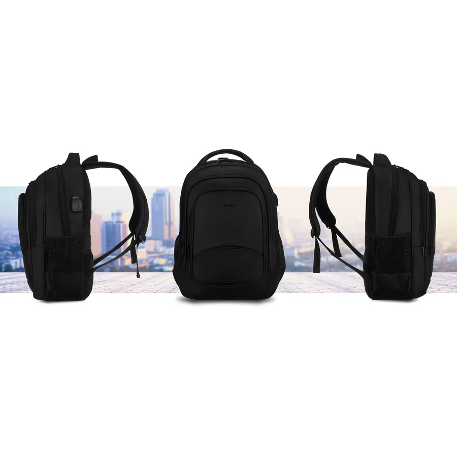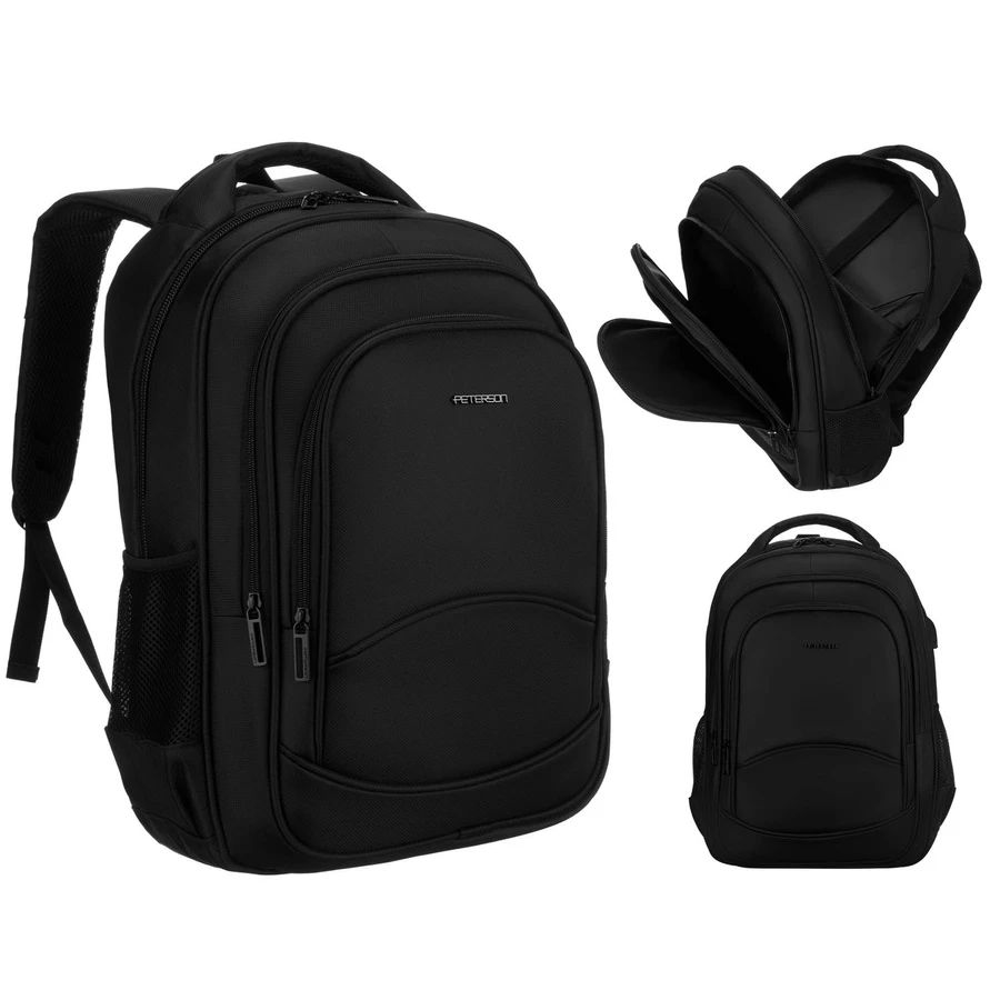 Plecak szkolny czarny Peterson 25L – plecak z USB na laptop i A4