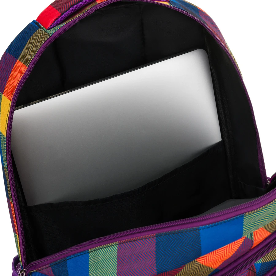 Plecak szkolny w kratę odszyty z poliestru, zawieszony na regulowanych szelkach - Peterson
