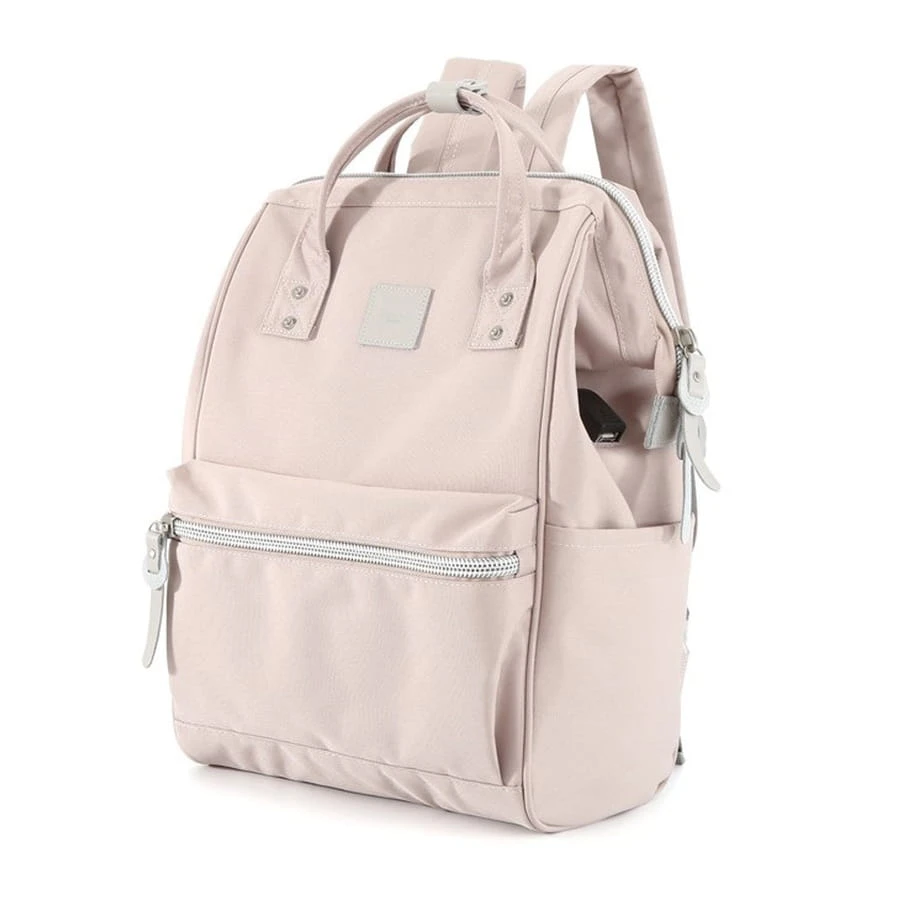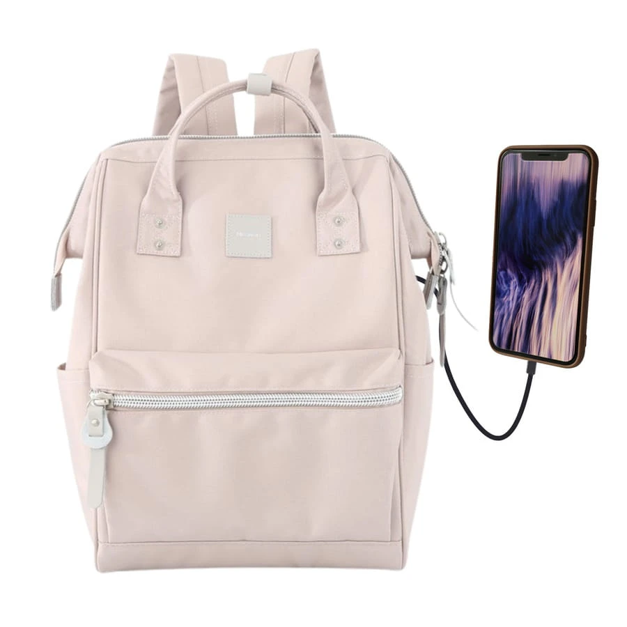 Plecak w kolorze pudrowego różu zawieszony na regulowanych szelkach i wyposażony w port USB - Himawari
