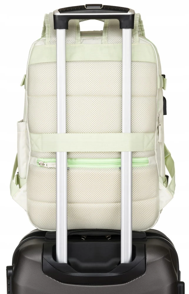 Na tylnej ścianie plecaka znajduje się uchwyt, który zaczepisz o walizkę.