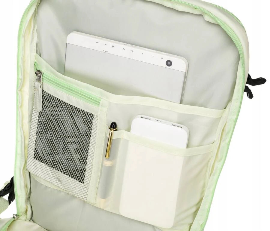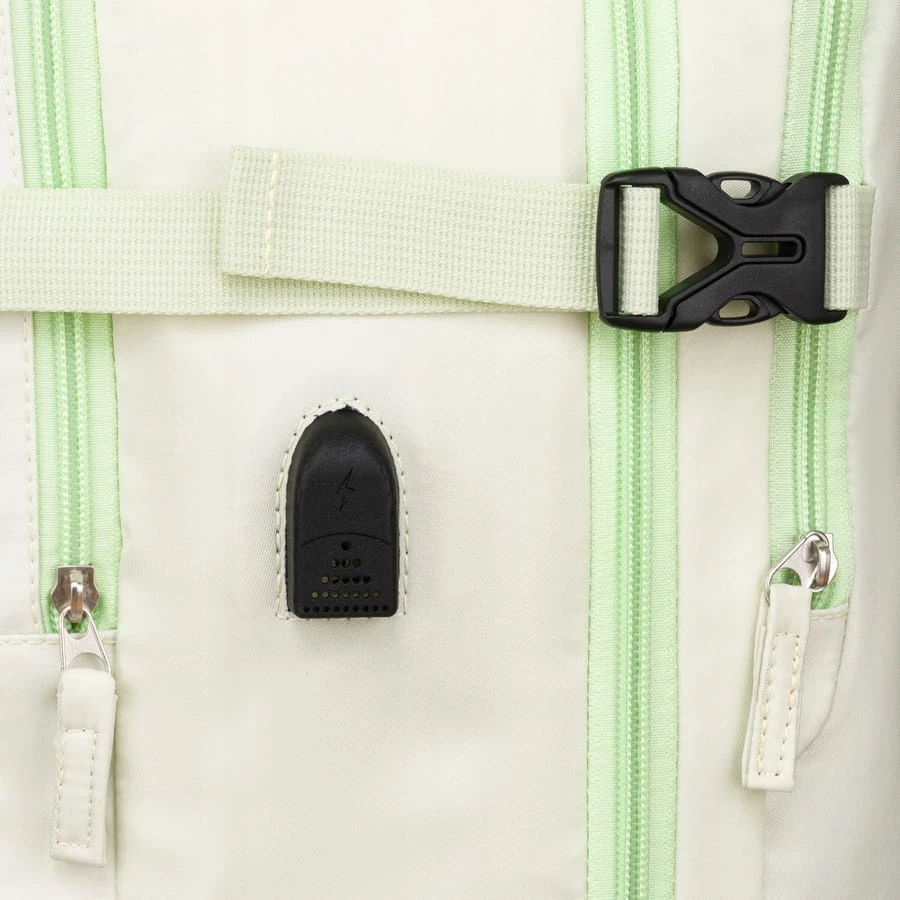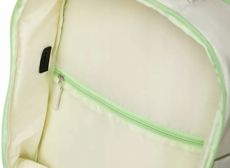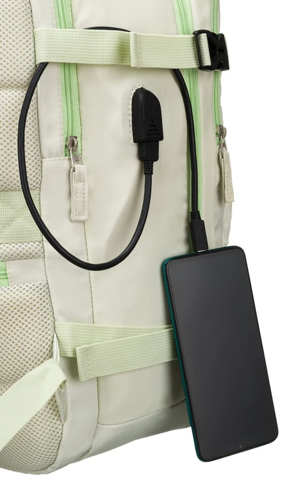 Plecak w swym wyposażeniu posiada również port USB, który służy jako "przejściówka". Umożliwia to w wygodny sposób ładowanie Twojego laptopa, tabletu czy smartfona, bez wyjmowania go z plecaka.