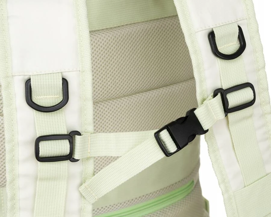 Wewnętrzna strona szelek oraz tylna ściana plecaka wyściełane są siatkowaną tkaniną zapewniającą odpowiednią wentylację - dostateczna cyrkulacja powietrza chłodzi i odprowadza pot z pleców.