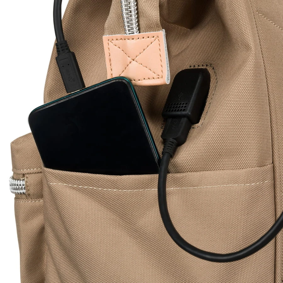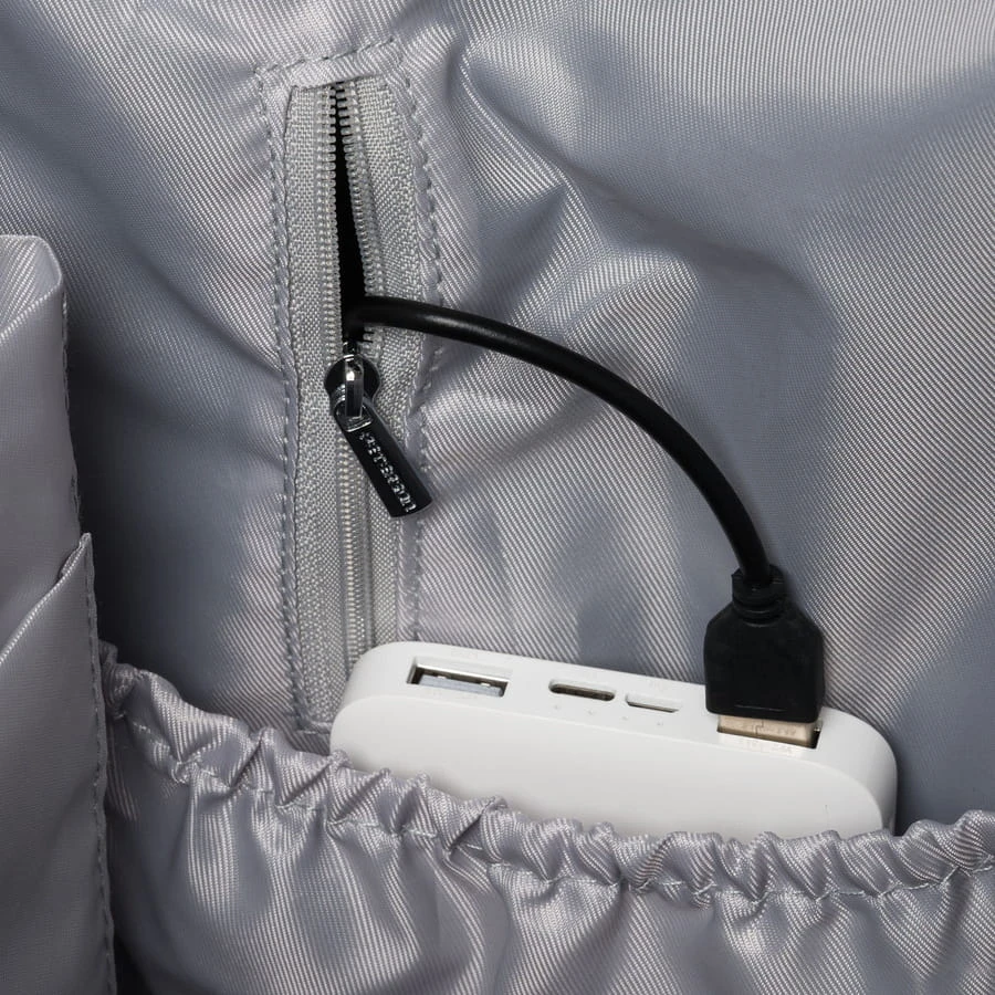 Nie musisz już martwić się o rozładowaną baterię w telefonie! Ten plecak został wyposażony w praktyczny port USB, który umożliwia wygodne podłączenie powerbanka i ładowanie urządzeń mobilnych w dowolnym miejscu. Port jest umieszczony z boku plecaka, dzięki czemu możesz ładować telefon bez konieczności otwierania plecaka – idealne rozwiązanie dla osób aktywnych, które zawsze chcą być w kontakcie.