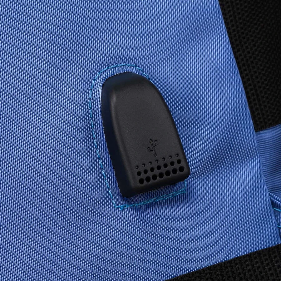 Plecak w swym wyposażeniu posiada również port USB, który służy jako "przejściówka". Umożliwia to w wygodny sposób ładowanie Twojego laptopa, tabletu czy smartfona, bez wyjmowania go z plecaka.