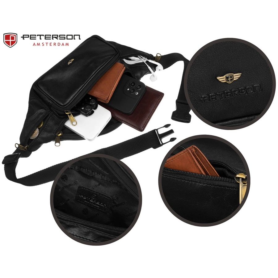 Pojemna saszetka męska w czarnym kolorze wykonana ze skóry naturalnej - Peterson