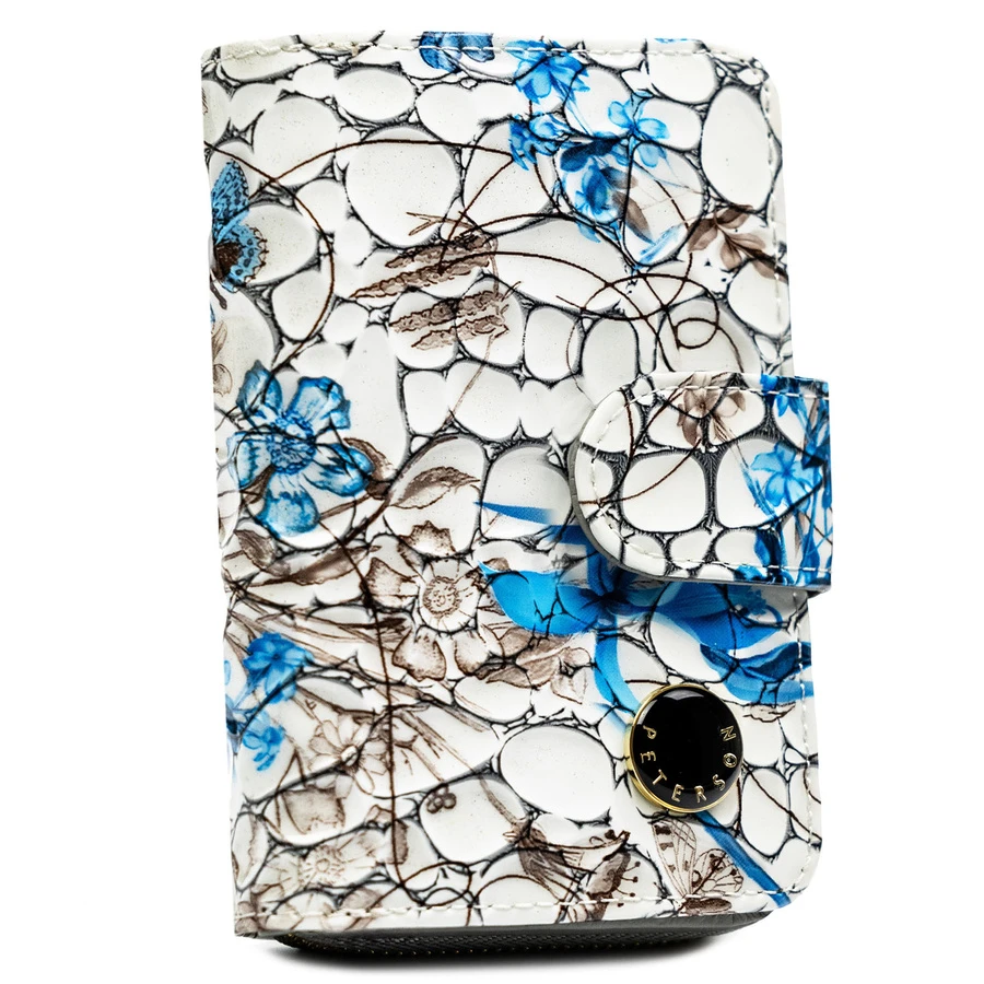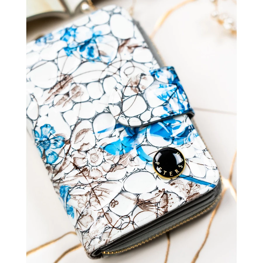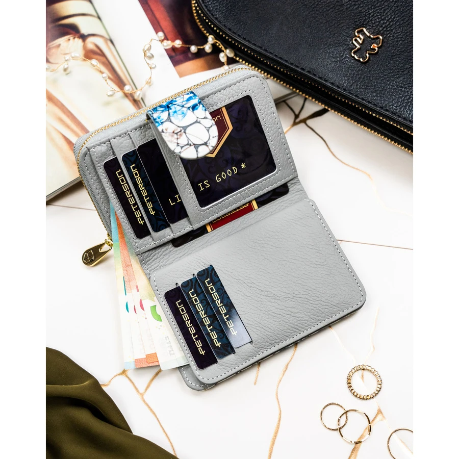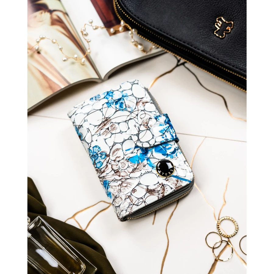 Pojemny, białoniebieski portfel damski ze skóry naturalnej z systemem RFID - Peterson