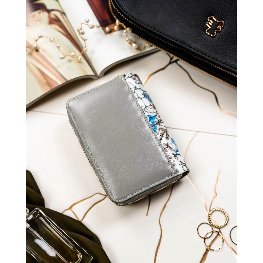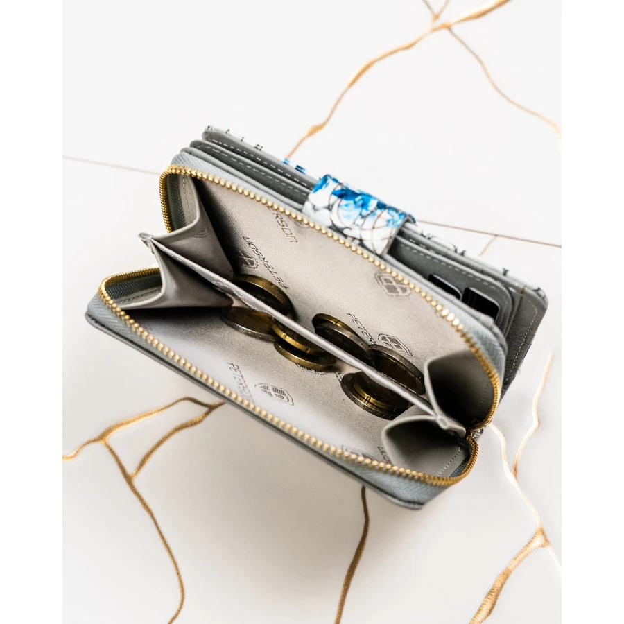 - Pojemna kieszeń na bilon zamykana na suwak.