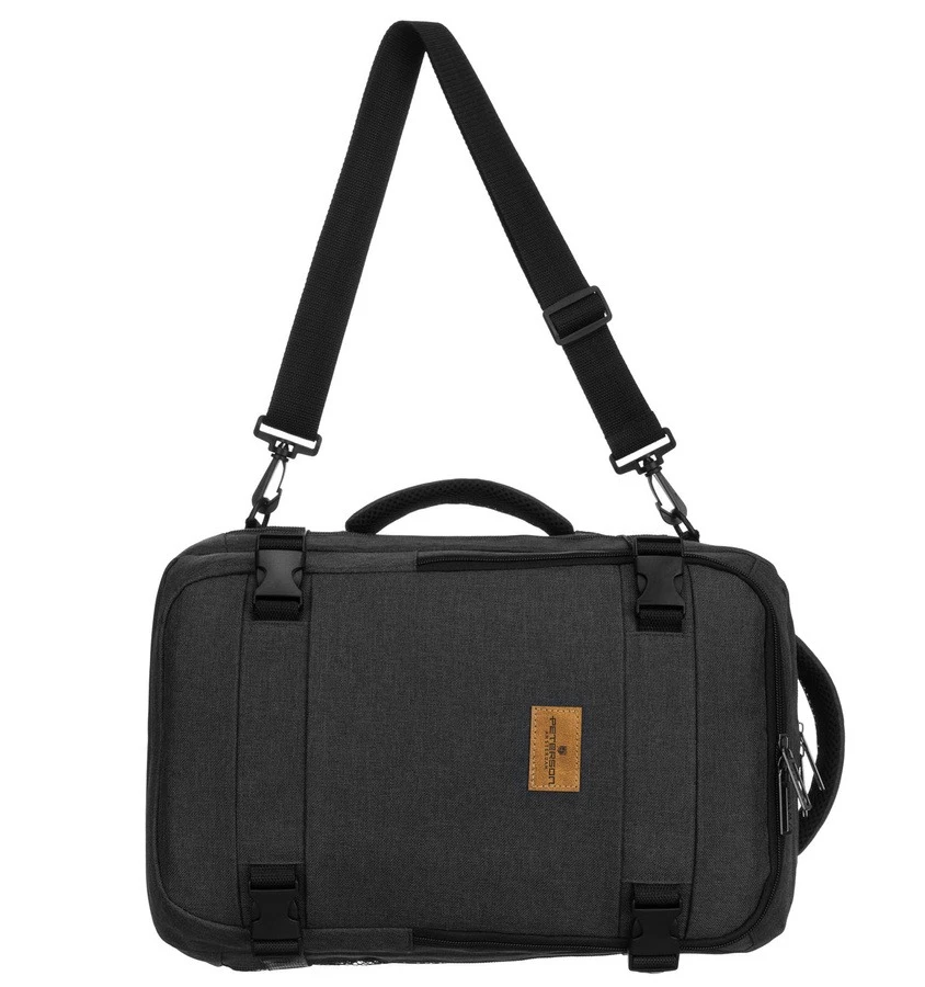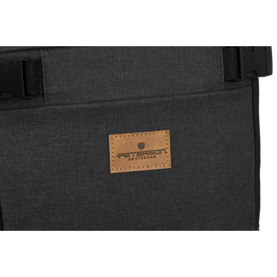 Czarny plecak podróżny Peterson® to praktyczny i pojemny model wykonany z trwałego poliestru, idealny jako bagaż podręczny. Wyposażony w szeroko otwieraną komorę główną, regulowane pasy kompresyjne oraz dopinany pasek do noszenia jak torby. Doskonały do codziennych podróży i wyjazdów weekendowych.
