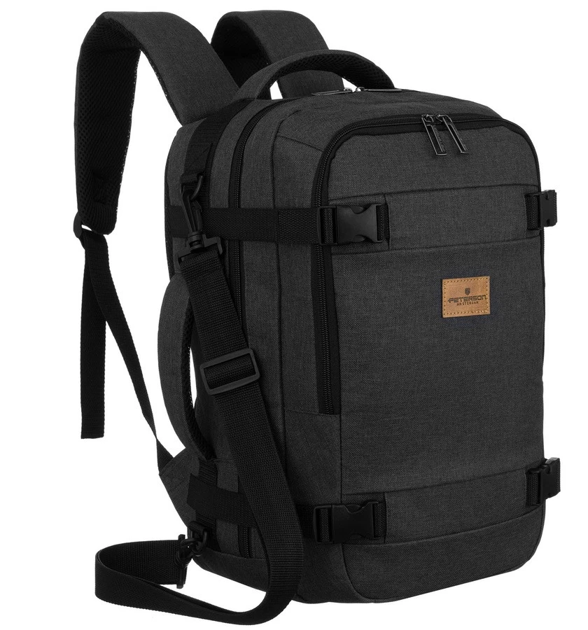 Pojemny, podróżny i czarny plecak z poliestru idealny na bagaż podręczny - Peterson