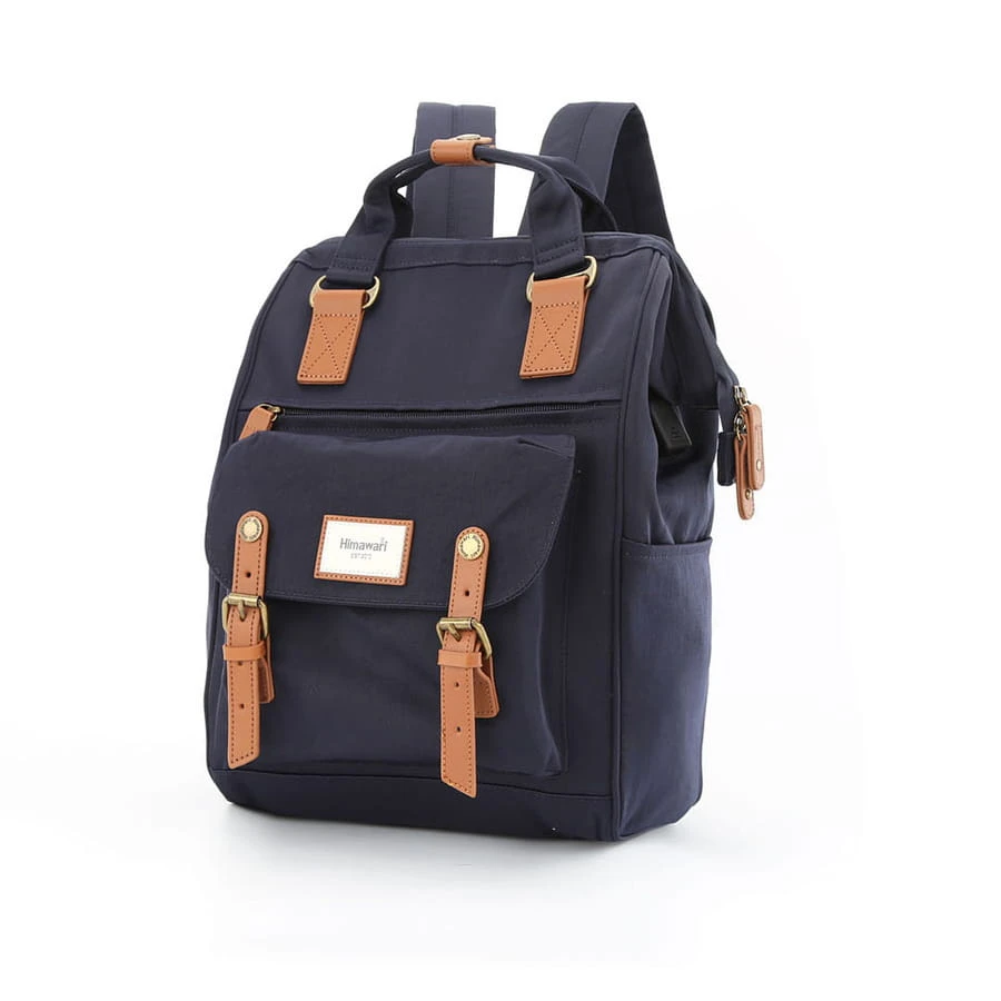 Pojemny plecak z wodoodpornego poliestru w granatowym kolorze z kieszenią na laptopa - Himawari