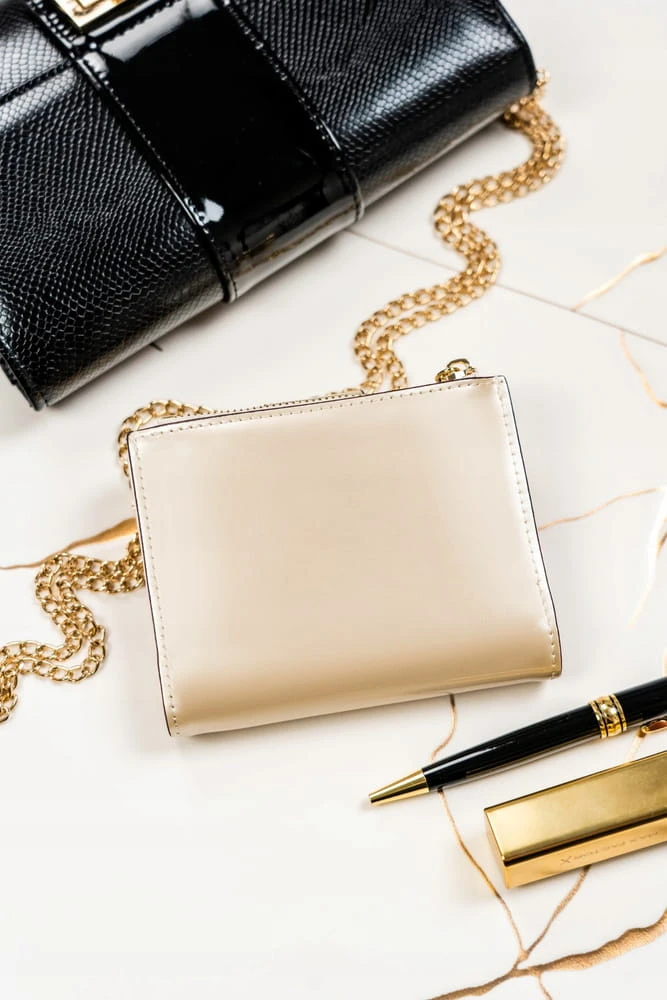 - 1 kieszeni zamykanej na suwak. Kieszeń ta jest oddzielną sekcją portfela.