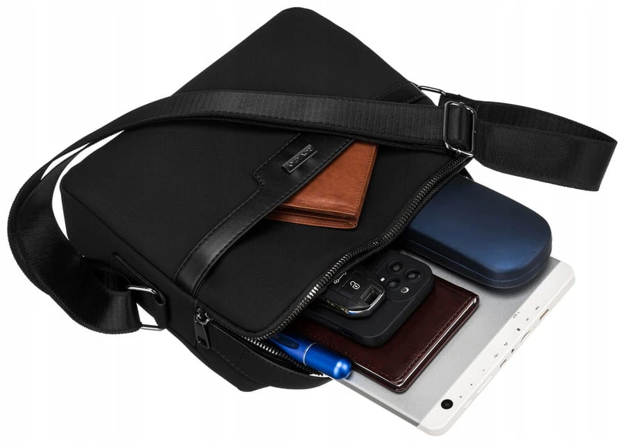 - Dużą główną komorę, która jest idealna do przechowywania większych przedmiotów takich jak książki, dokumenty, notatniki czy nawet tableta. W środku niej znajduje się zasuwana kieszeń, która nada się idealnie do umieszczenia mniejszych rzeczy wymagających dodatkowej ochrony.