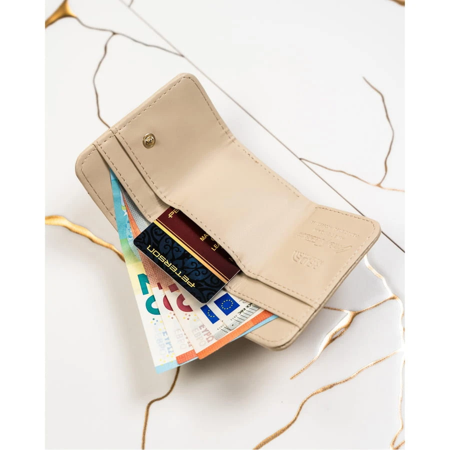 - Maleńki, poręczny portfel | Model niewielkich rozmiarów - idealny do małych torebek. Pomimo rozmiaru, w portfelu zmieścisz wszystkie najpotrzebniejsze rzeczy, a jego użytkowanie będzie czystą przyjemnością