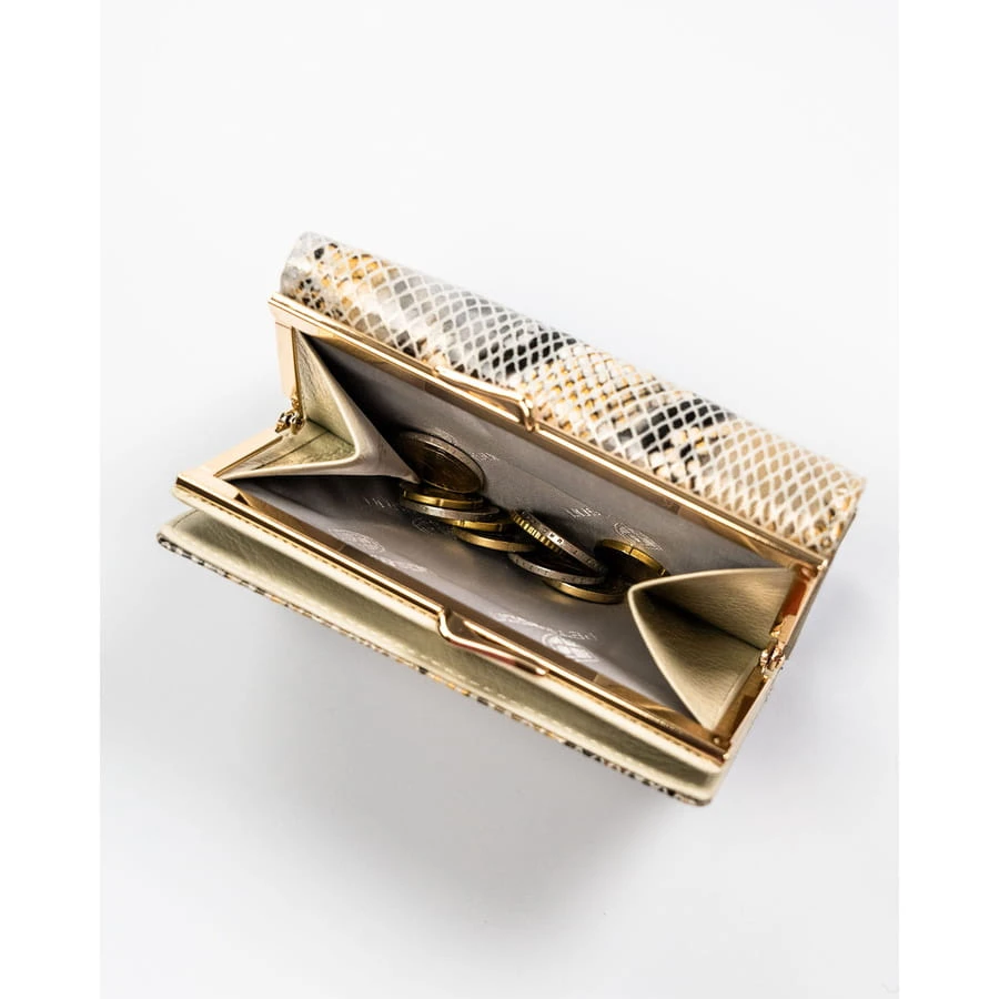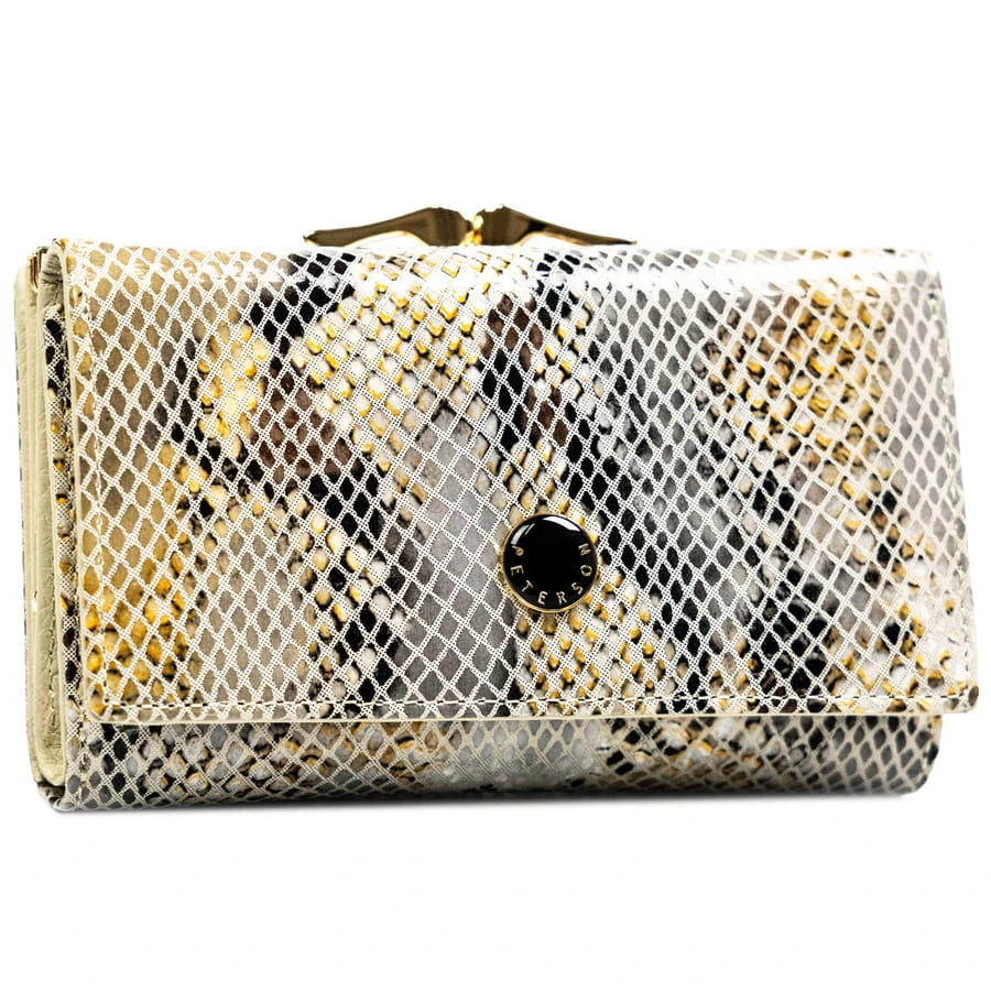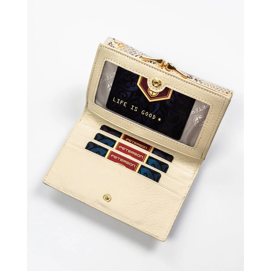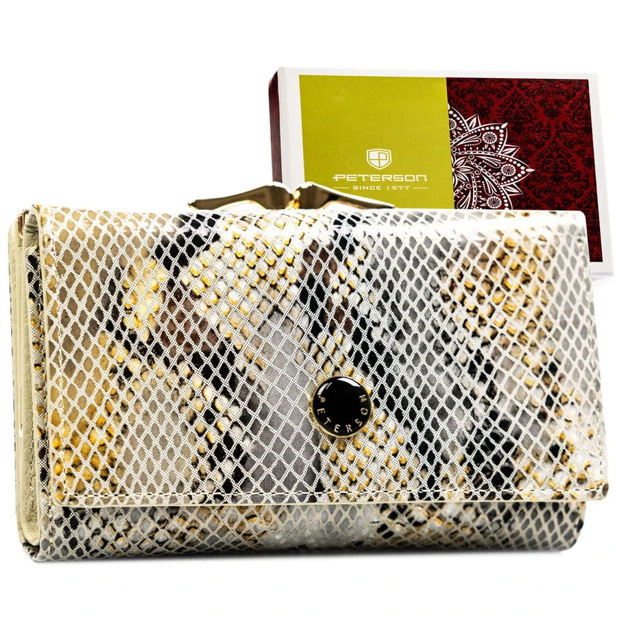Portfel damski na bigiel i zatrzask wykonany ze skóry naturalnej ze wzorem imitującym skórę węża - Peterson