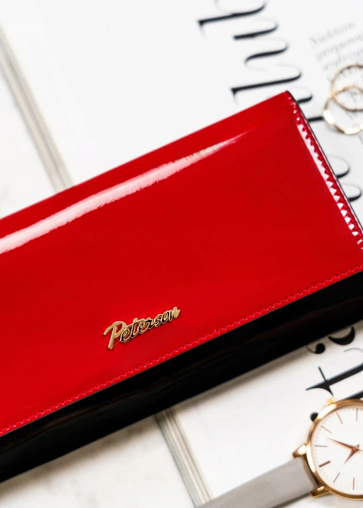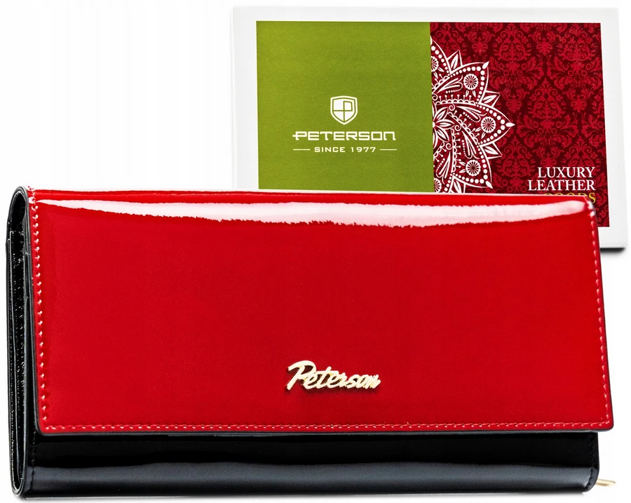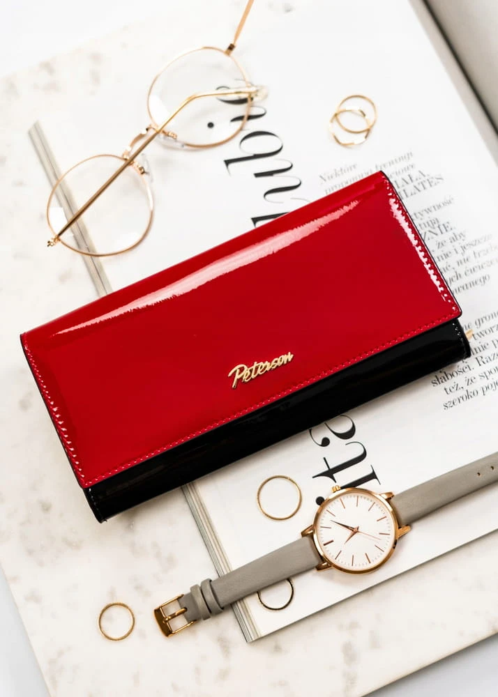 Portfel damski w czerwono-czarnym kolorze z kieszenią wewnętrzną na suwak - Peterson