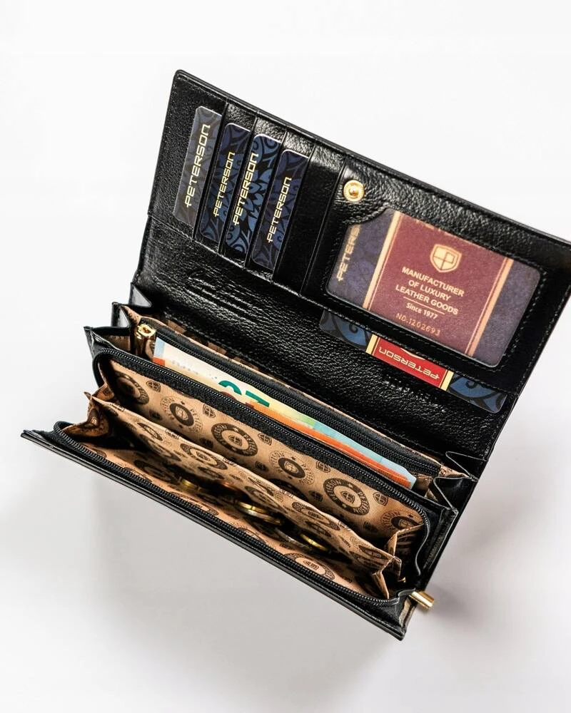 - 2 pojemne przegródki, w których pomieścisz znaczną ilość banknotów.