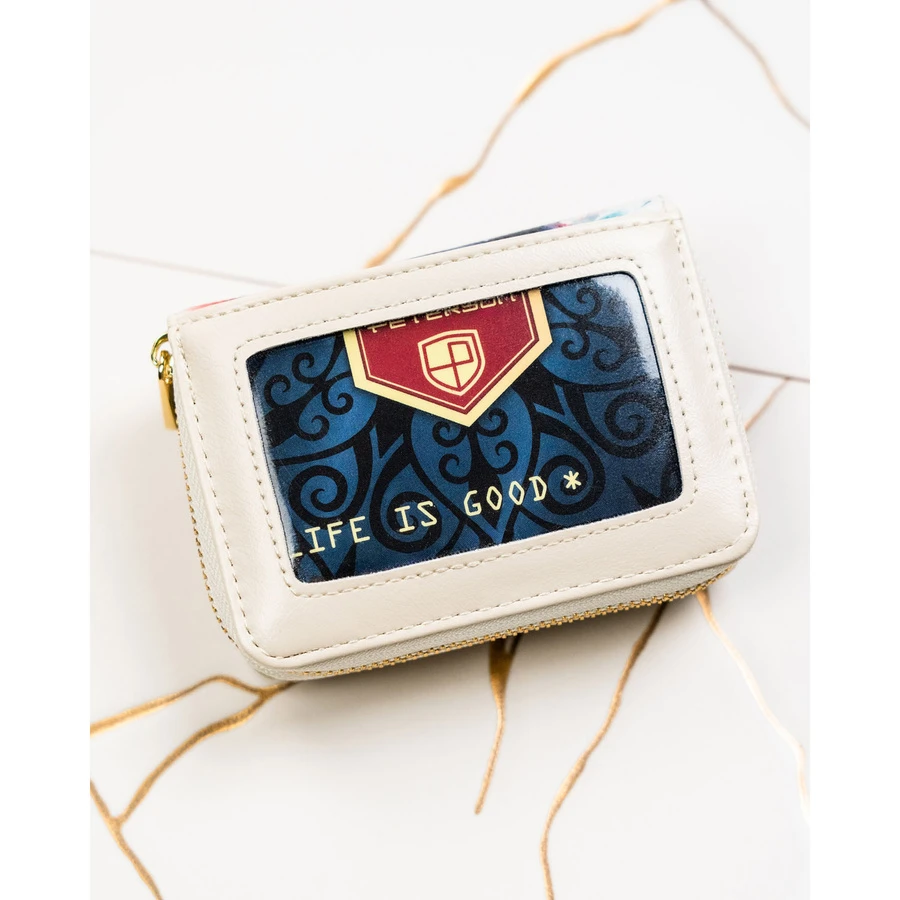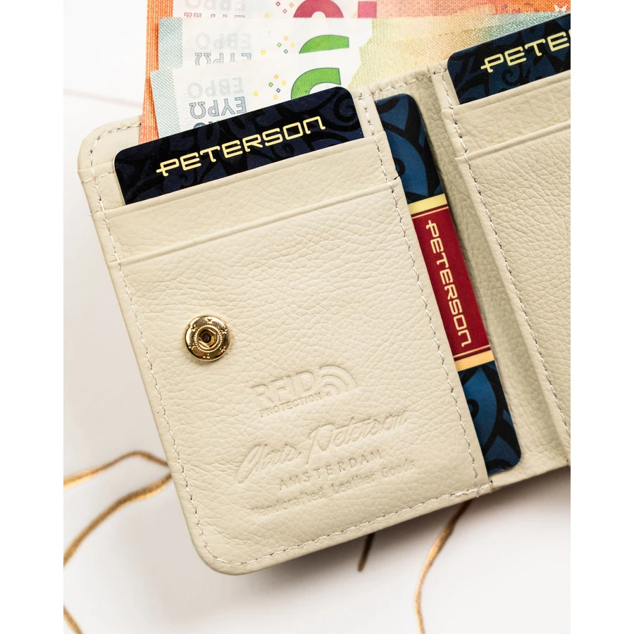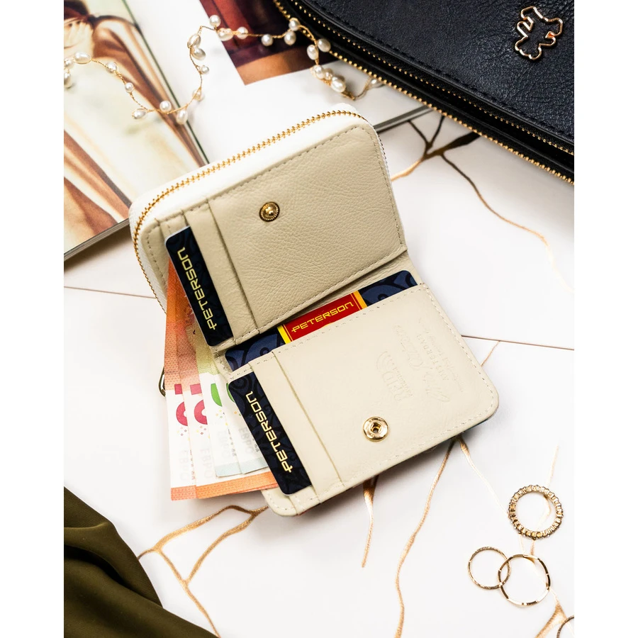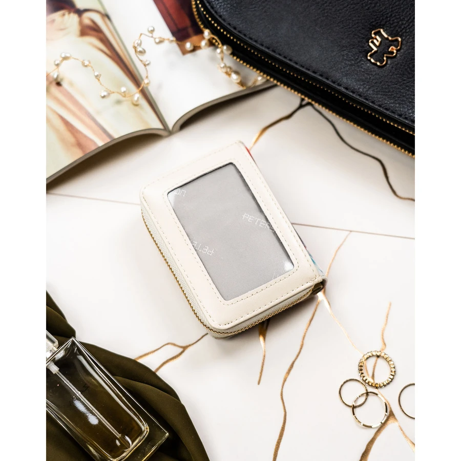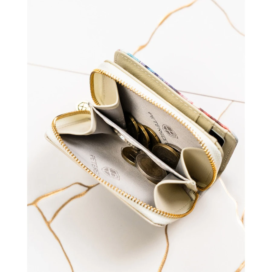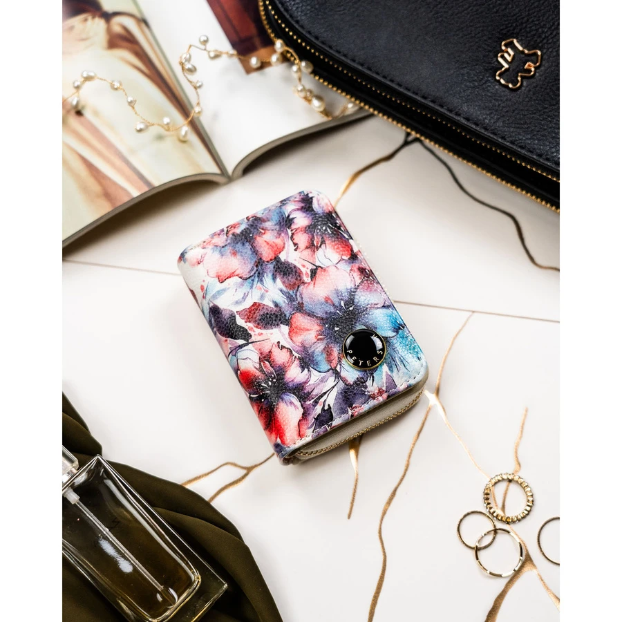 Portfel damski w kwiaty wykonany ze skóry naturalnej i ekologicznej, zamykany na zatrzask i suwak - Peterson