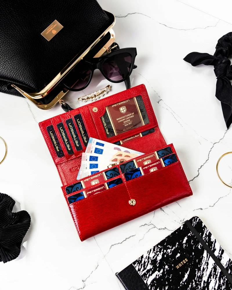 Portfel damski z lakierowanej skóry naturalnej — Peterson