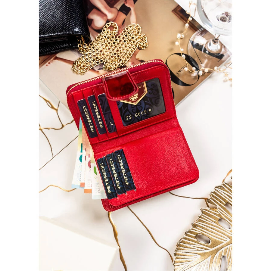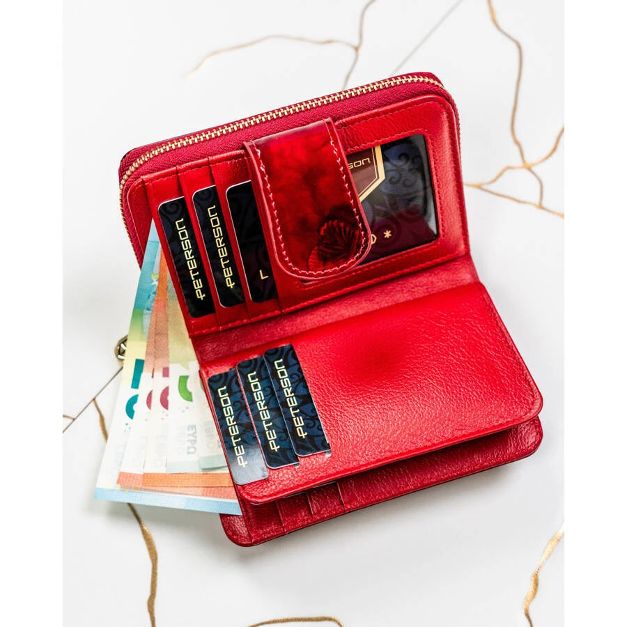 Portfel damski z ochroną RFID czerwony na karty - Peterson