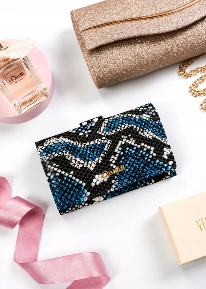 Portfel damski ze skóry naturalnej i ekologicznej o fakturze imitującej skórę węża – portfel damski 4U Cavaldi, skóra ekologiczna, elegancki | niua.pl