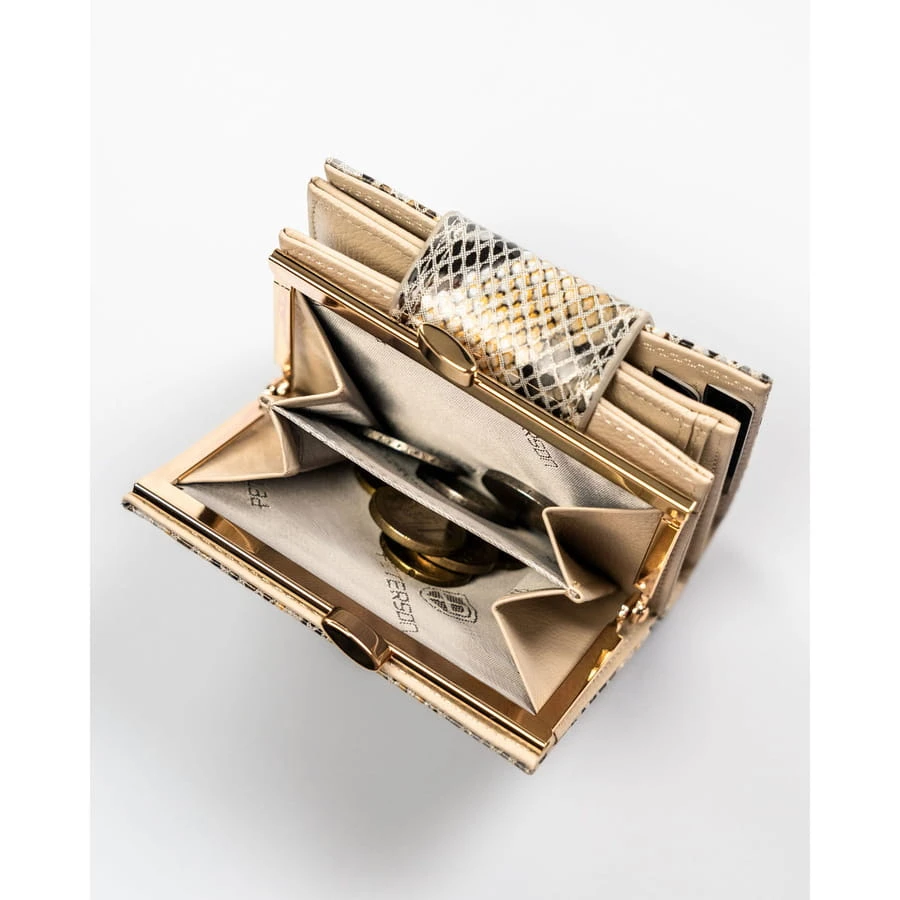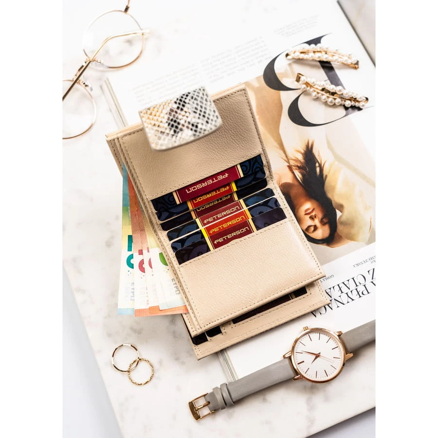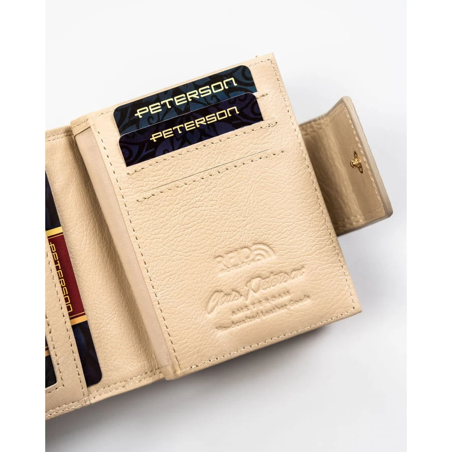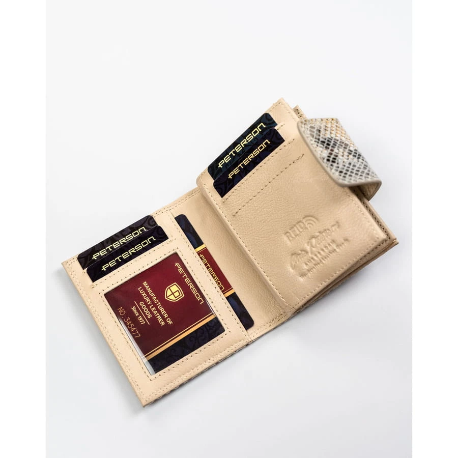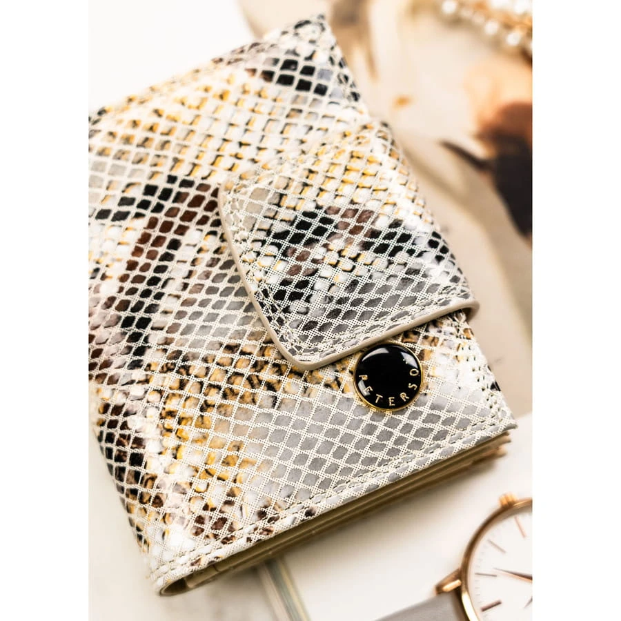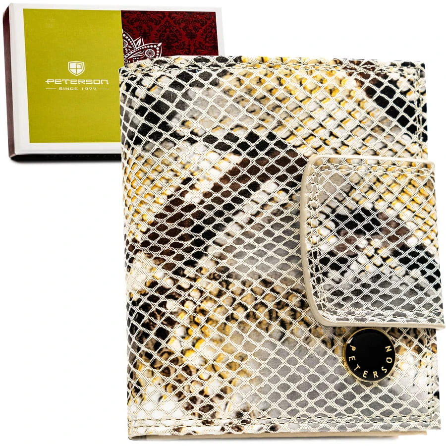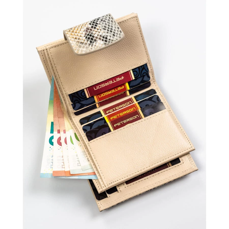 Portfel damski ze skóry naturalnej zamykany zatrzaskiem i biglem - Peterson
