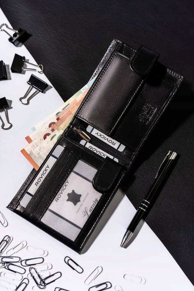 - Czy portfel posiada RFID? Wybrane modele posiadają ochronę RFID, która zabezpiecza karty przed skanowaniem.