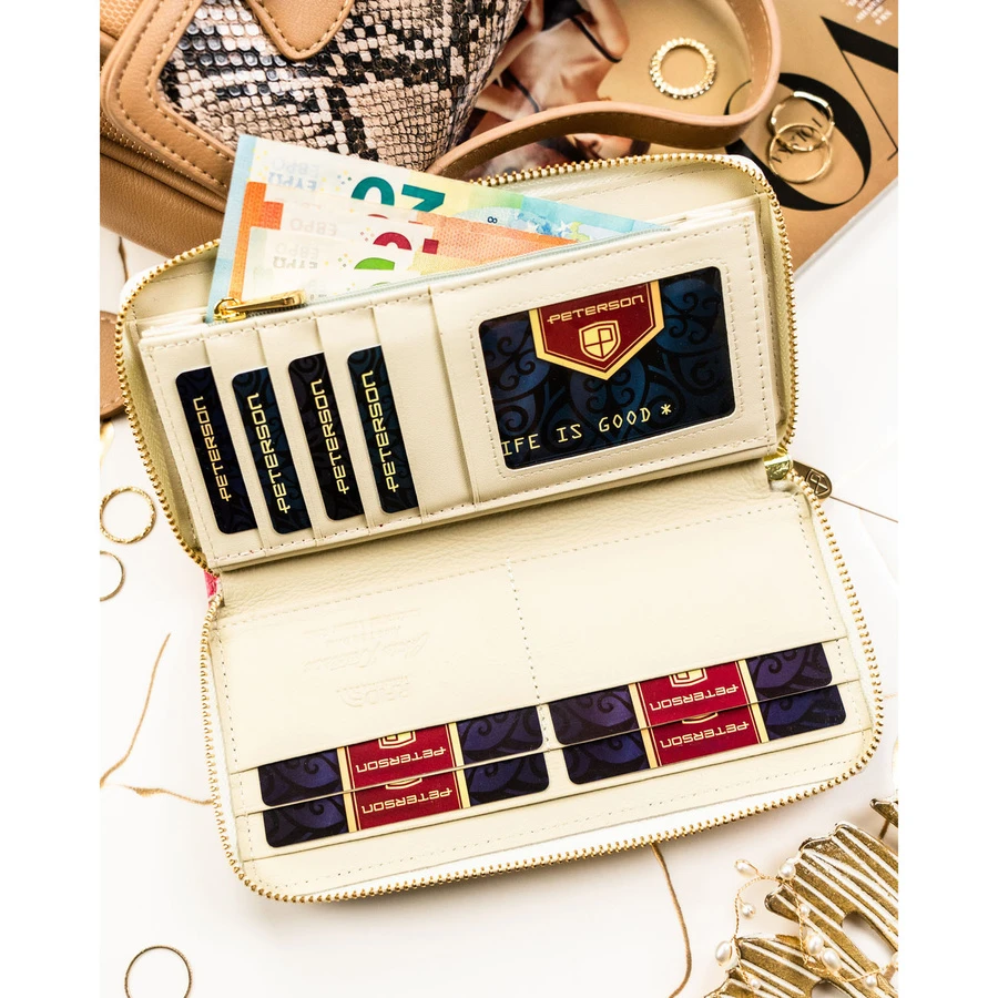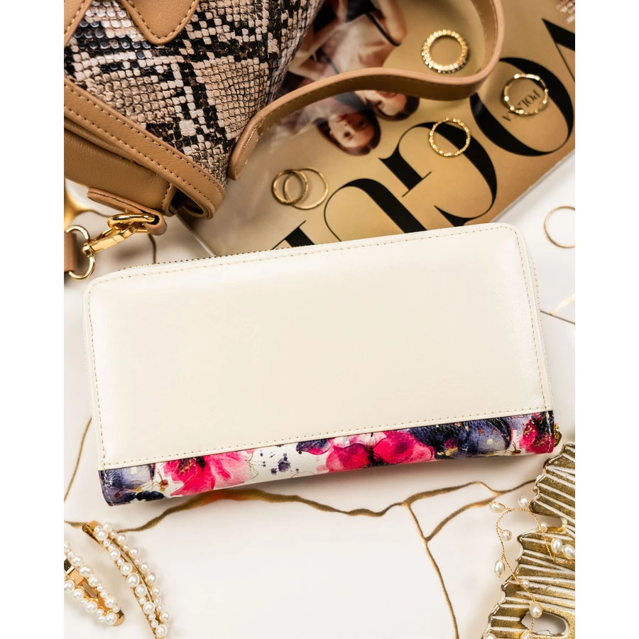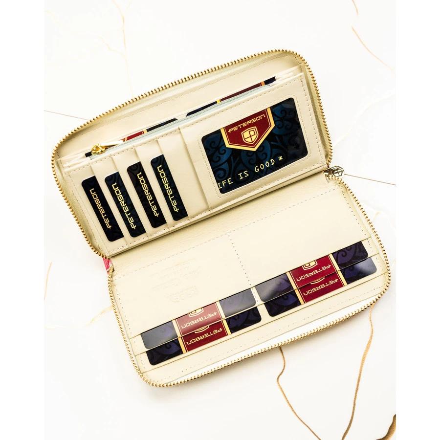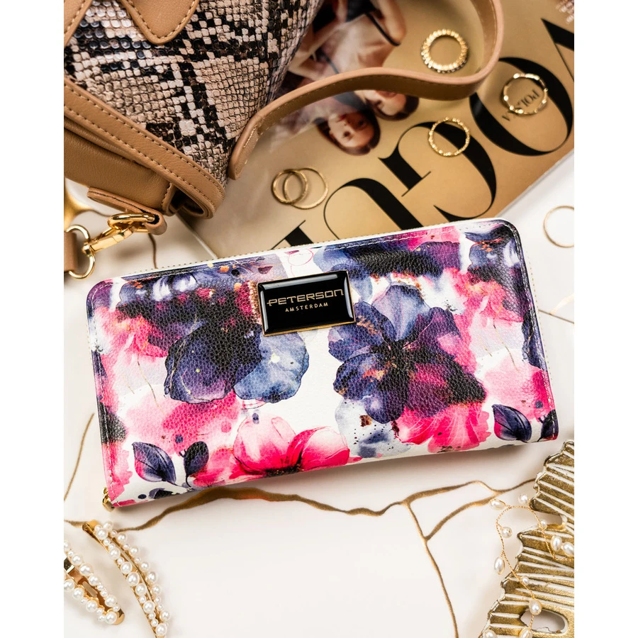 Portfel-piórnik damski w kwiaty wykonany ze skóry naturalnej i ekologicznej - Peterson