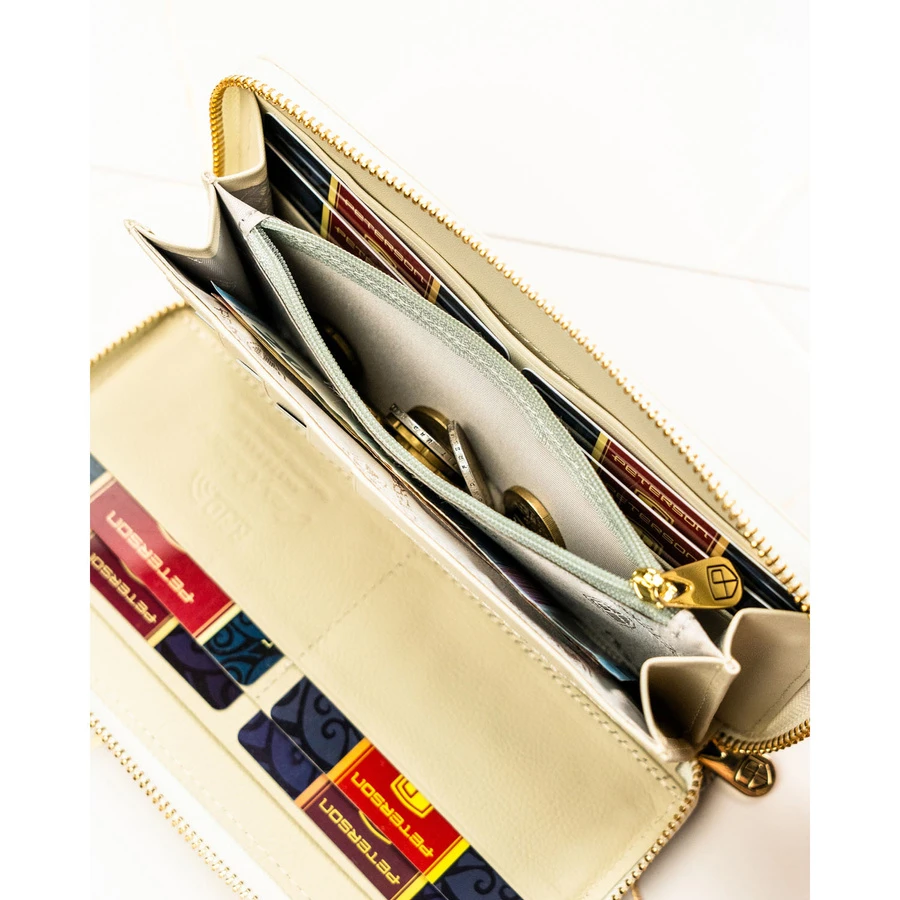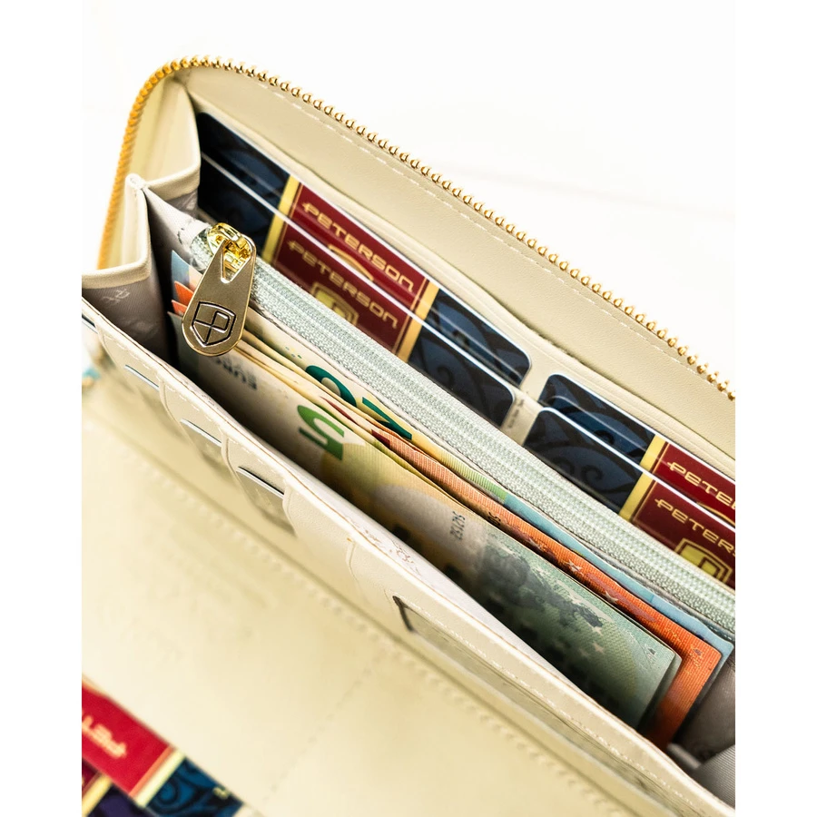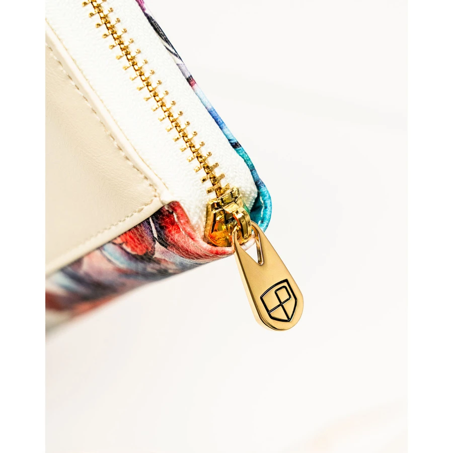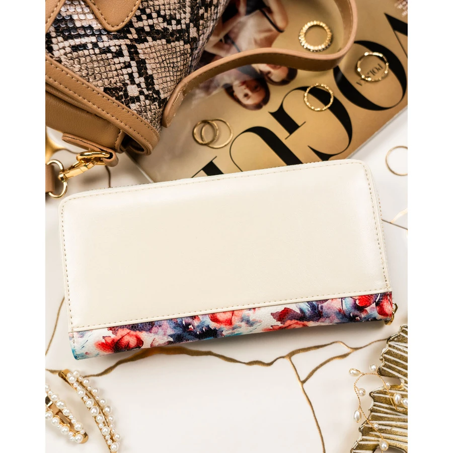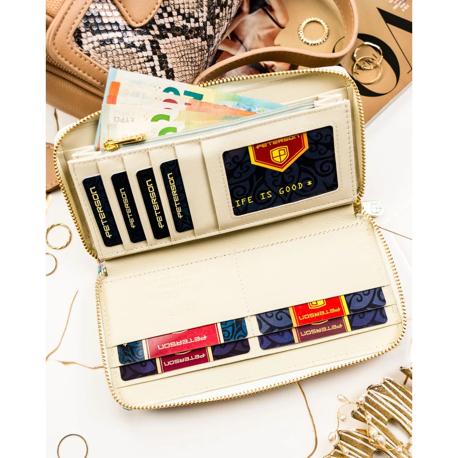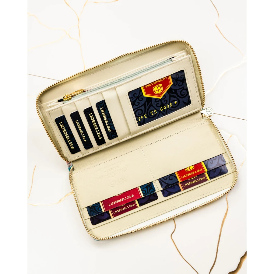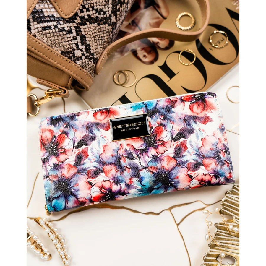 Portfel-piórnik damski w kwiaty wykonany ze skóry naturalnej i ekologicznej zamykany suwakiem - Peterson