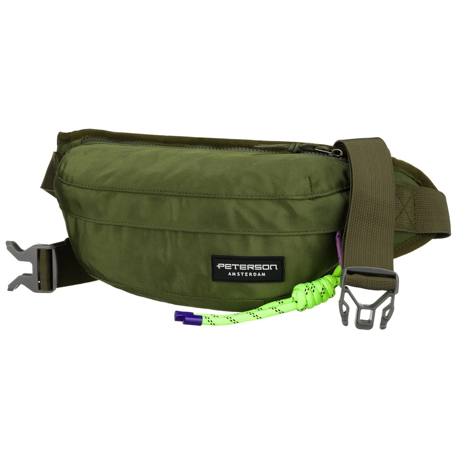 Praktyczna, pojemna saszetka z poliestru w zielonym kolorze, zamykana suwakiem ze stylowym karabińczykiem - Peterson