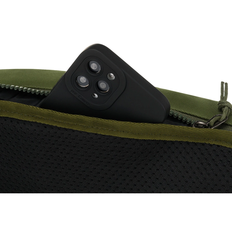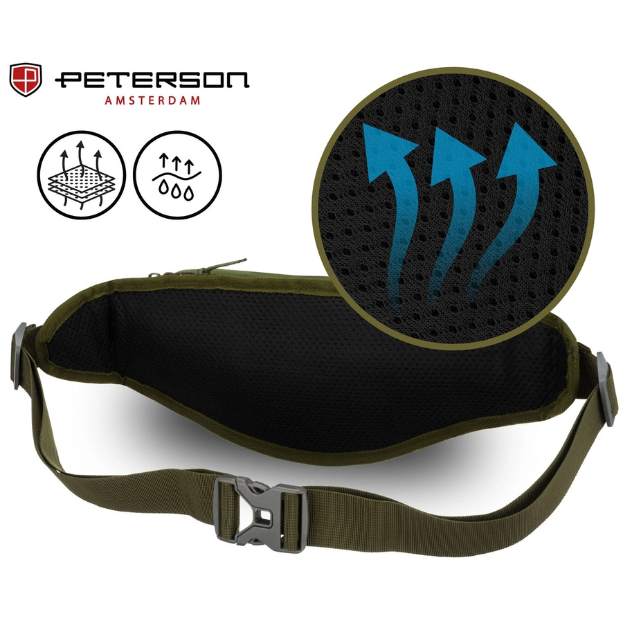 Tylny panel saszetki został wykonany z przewiewnej, siateczkowej tkaniny mesh, która zapewnia doskonałą cyrkulację powietrza. To rozwiązanie znacząco podnosi komfort noszenia – nawet w ciepłe dni czy podczas intensywnego ruchu.
