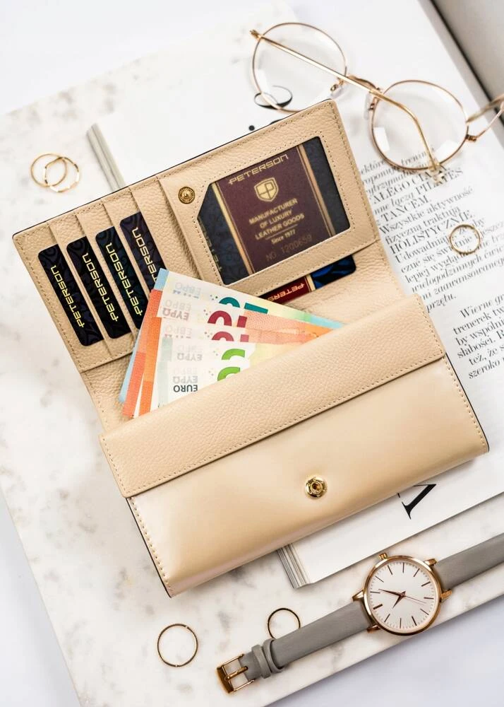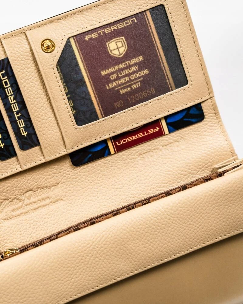 Praktyczny portfel damski w kolorze beżowym z systemem RFID - Peterson