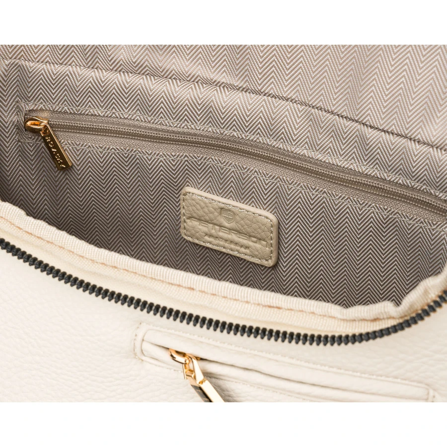 Saszetka damska ze skóry ekologicznej w jasnobeżowym kolorze, zamykana suwakiem - Peterson