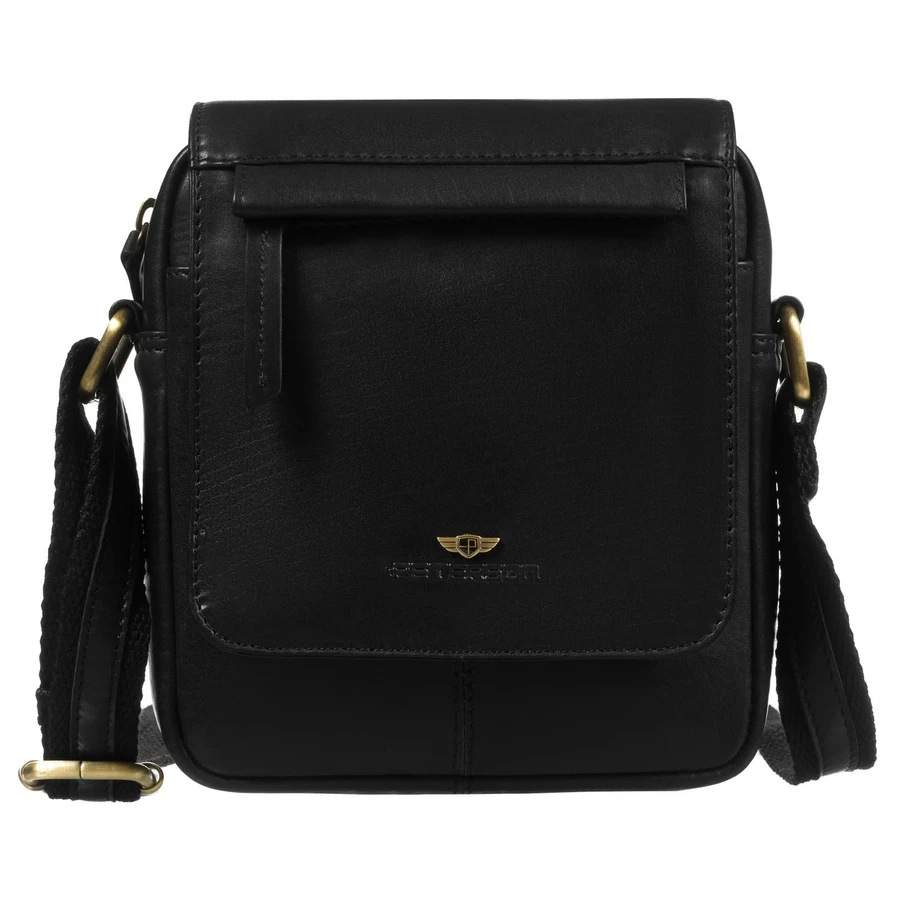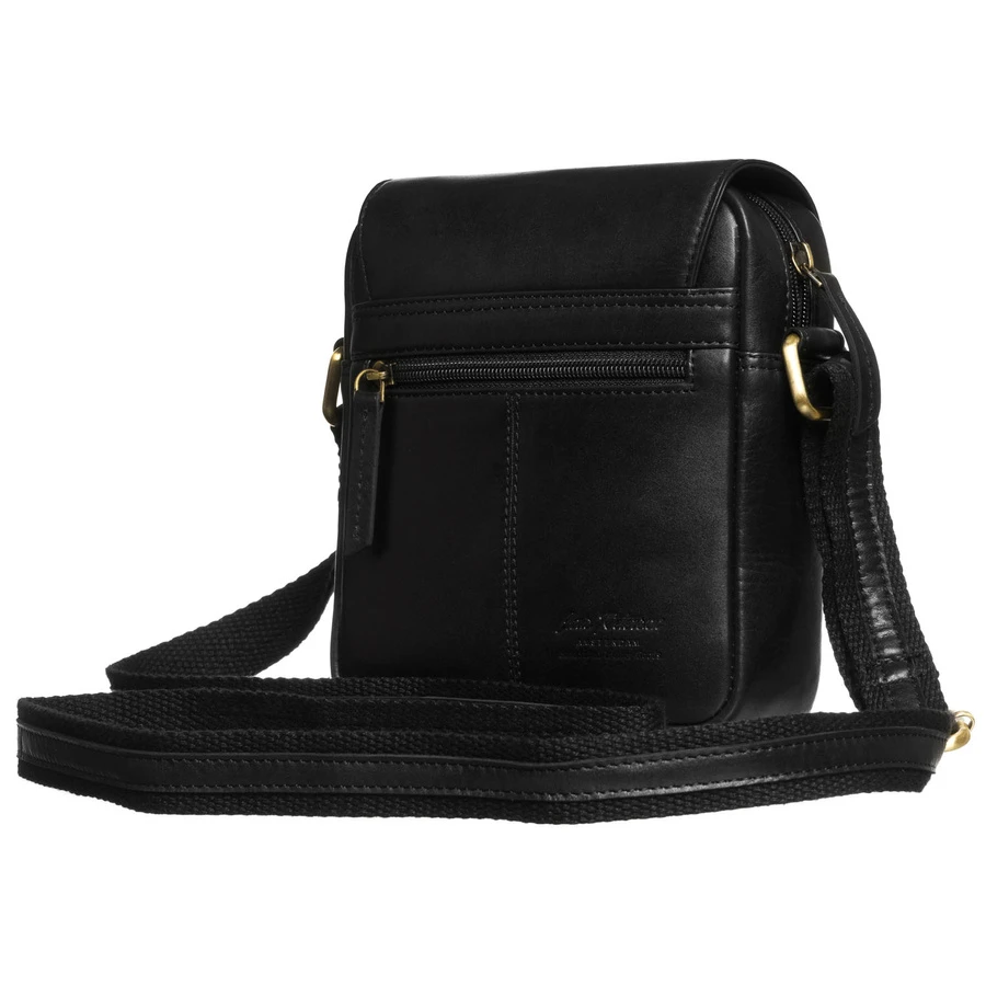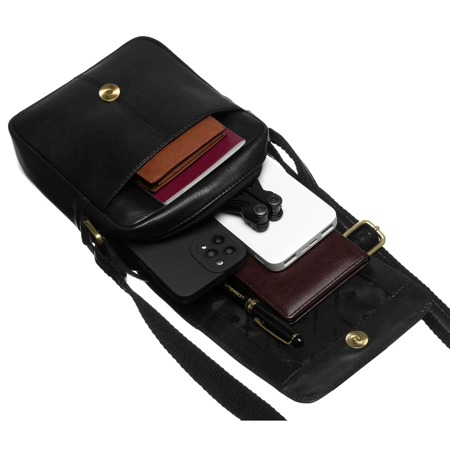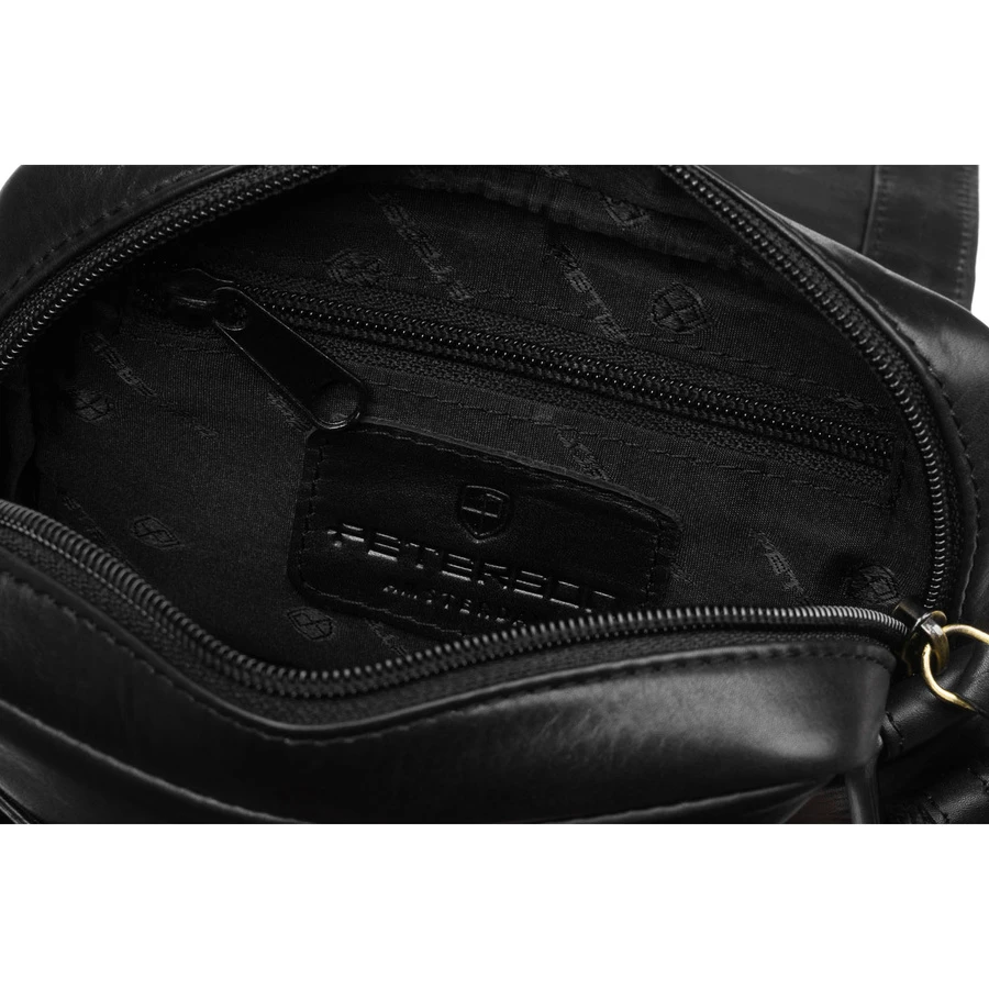 Skórzana, czarna torba męska na ramię zamykana suwakiem i klipsem magnetycznym - Peterson