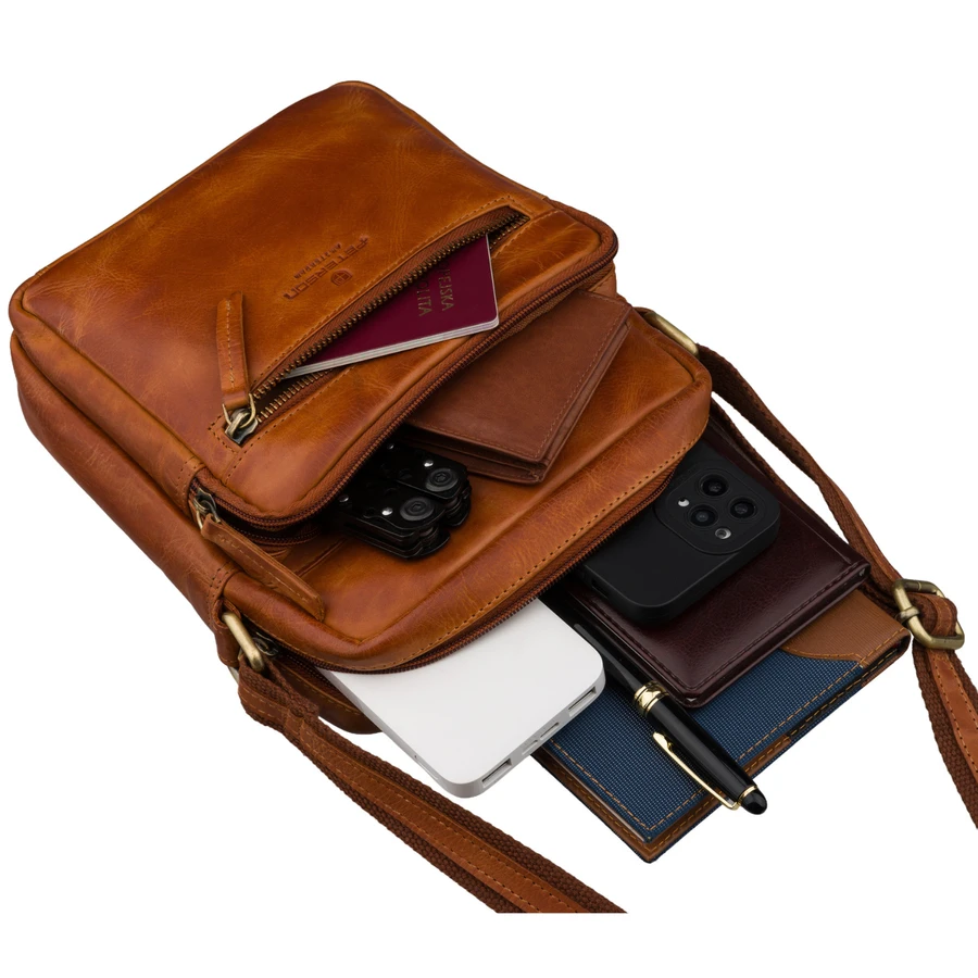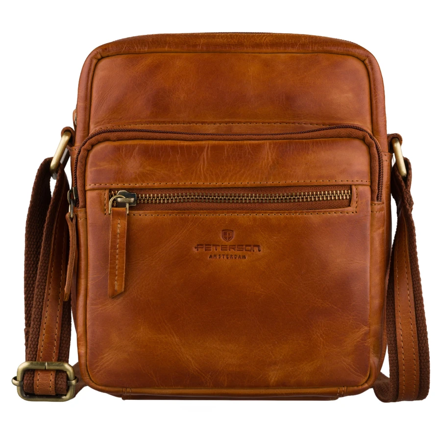 Skórzana listonoszka męska brązowa mała saszetka - Peterson