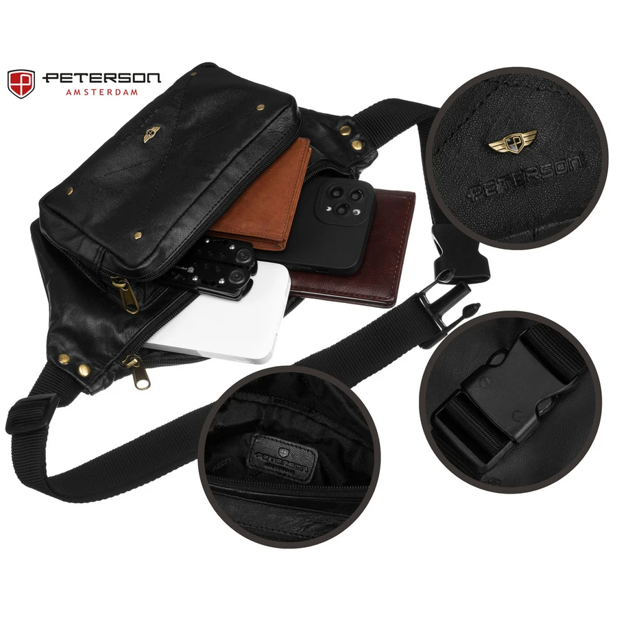 Skórzana nerka męska w czarnym kolorze zamykana na suwak - Peterson
