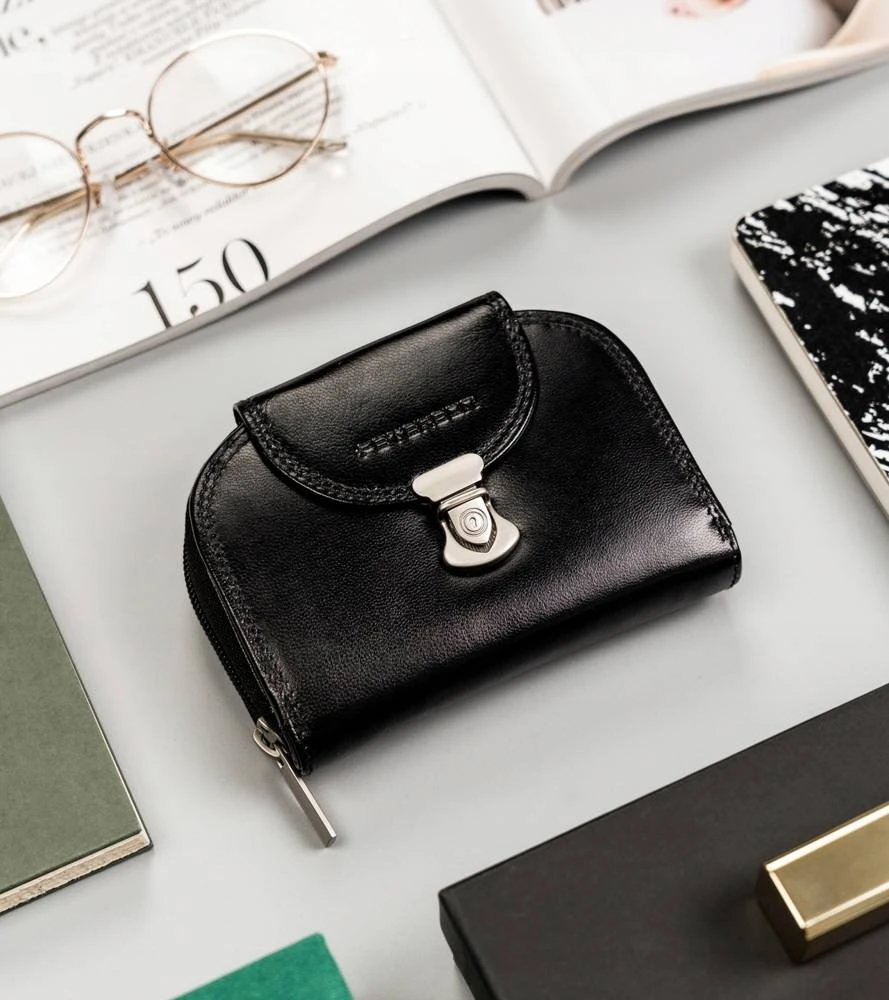 - Ponadczasowy dodatek | Portfel o klasycznej stylistyce w czarnym kolorze. Model w orientacji pionowej, zapinany klapką na solidny zatrzask.